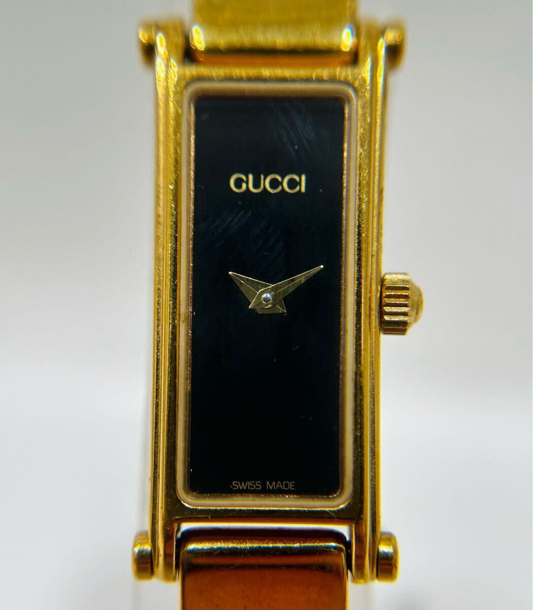 ◇【稼働品】GUCCI グッチ 1500 レディース腕時計 クォーツ ゴールドカラー 黒文字盤 保管品 ◇