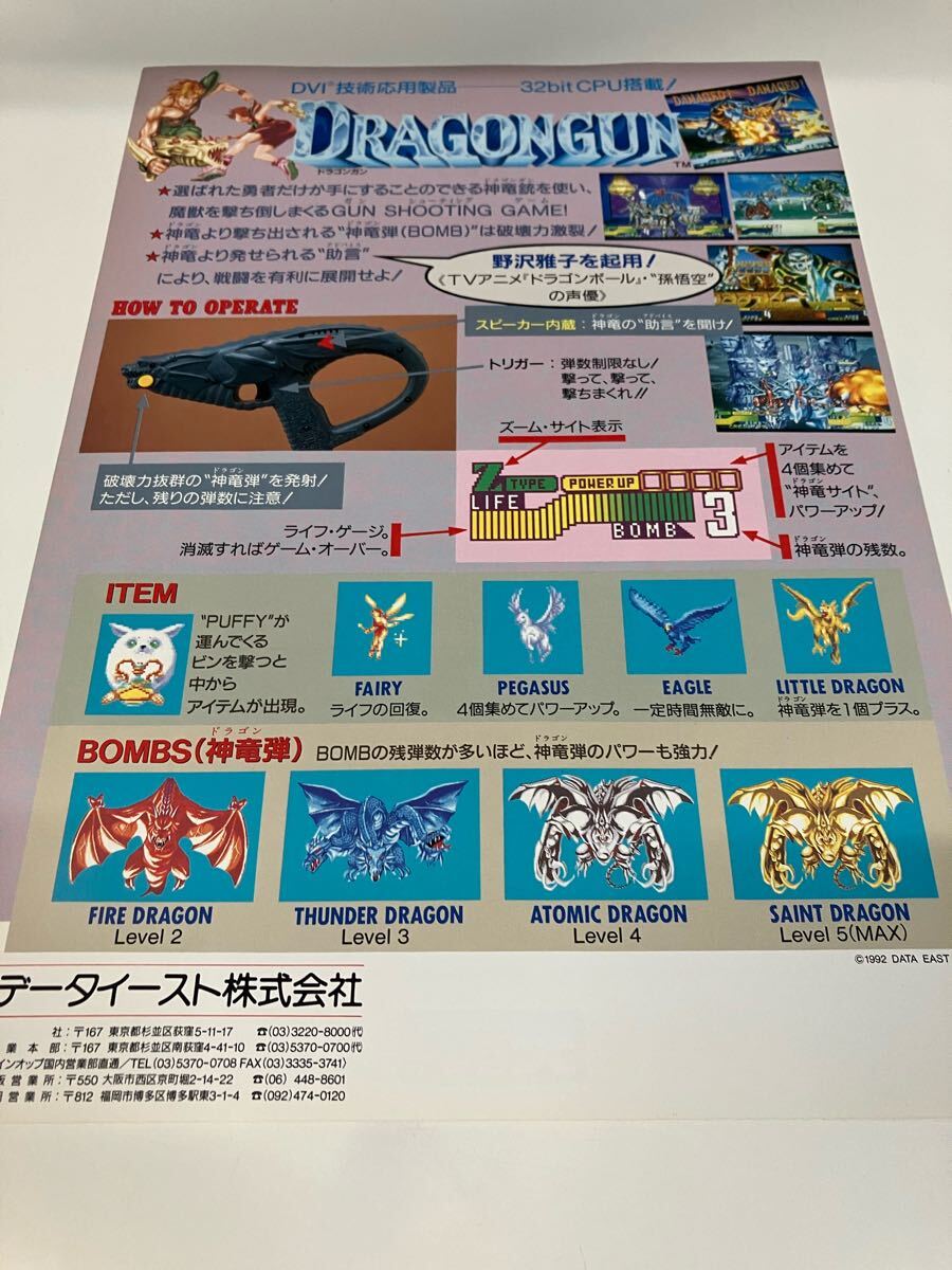 DORAGON GUN ドラゴンガン データイースト DATA EAST アーケード チラシ カタログ フライヤー パンフレット 販促 非売品