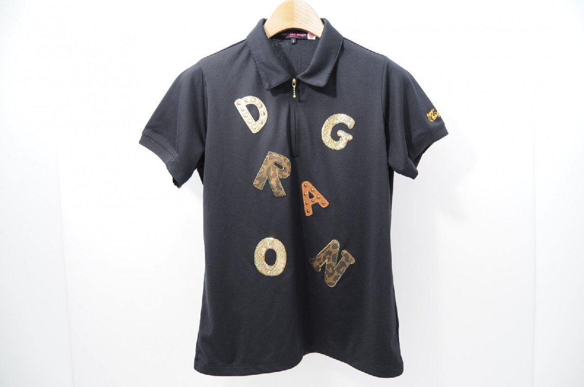 coco 中古【SALE】 ダンスウィズドラゴン レディース半袖ポロシャツ 4(LL) 黒 ハーフジップ レターパックプラス発送可 65469