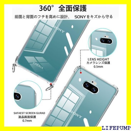 weiaoluo Xperia 8 ケース クリア ショルダー SOV42 902SOスマホケース Xperia8 カバー耐衝撃 肩掛け 縄掛けケース 透明 TPU ストラップ付き 携帯ケース 薄型 軽量 紐付き 斜めがけ 織り ネックストラップ ショルダー ケース 長さ調整可能 取り外し可能 ワイヤレス充電対応 落下防止 紛失防止 クリア 1025