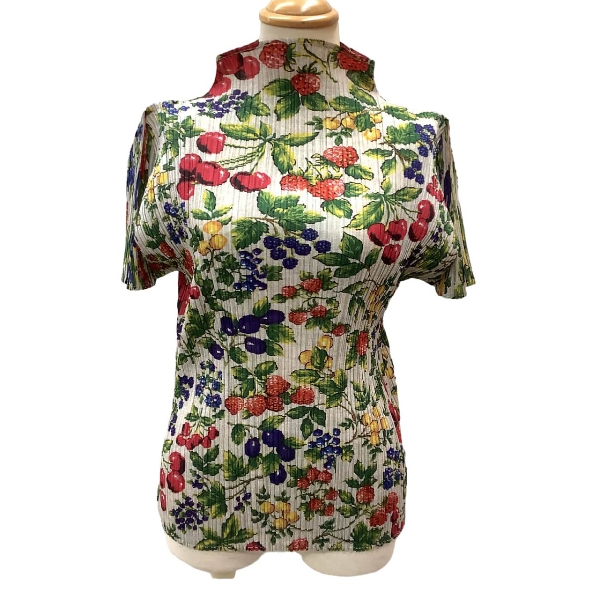 【商品名】中古 ISSEY MIYAKE イッセイミヤケ PLEATS PLEASE カットソー フルーツ SIZE 4 PP41-JK682 ベージュ やや傷や汚れあり
