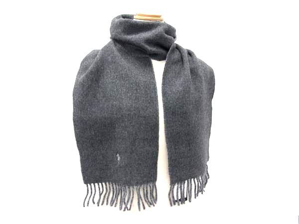 ■新品■未使用■ POLO RALPH LAUREN ポロラルフローレン ウール マフラー ストール 防寒具 メンズ レディース グレー系 FM6718