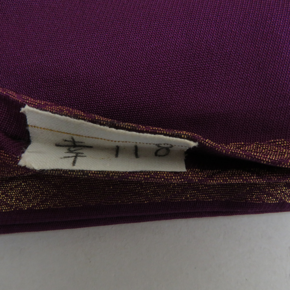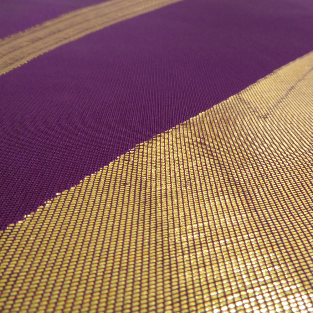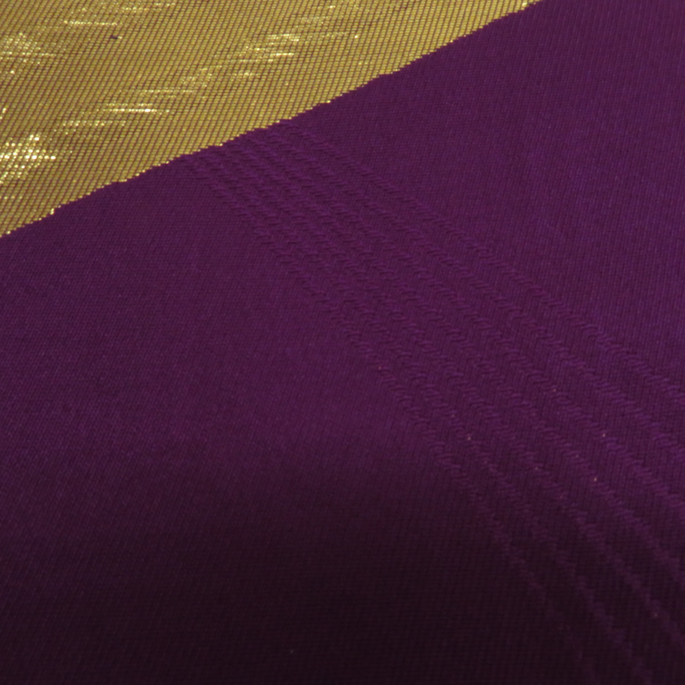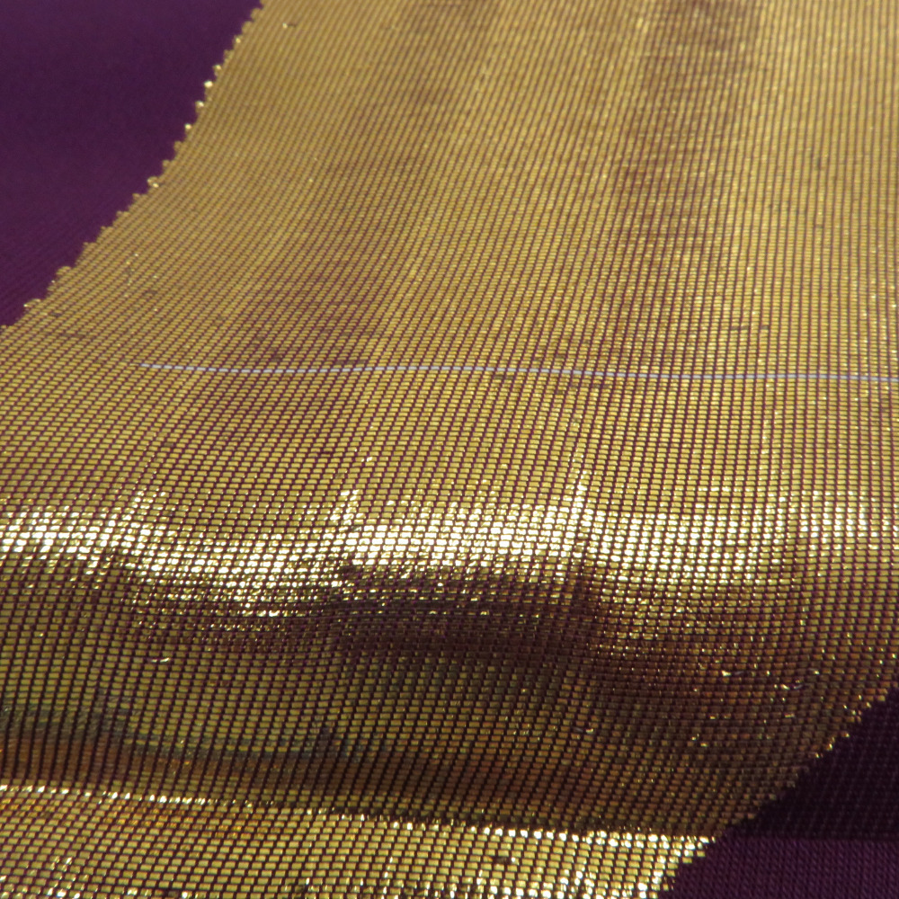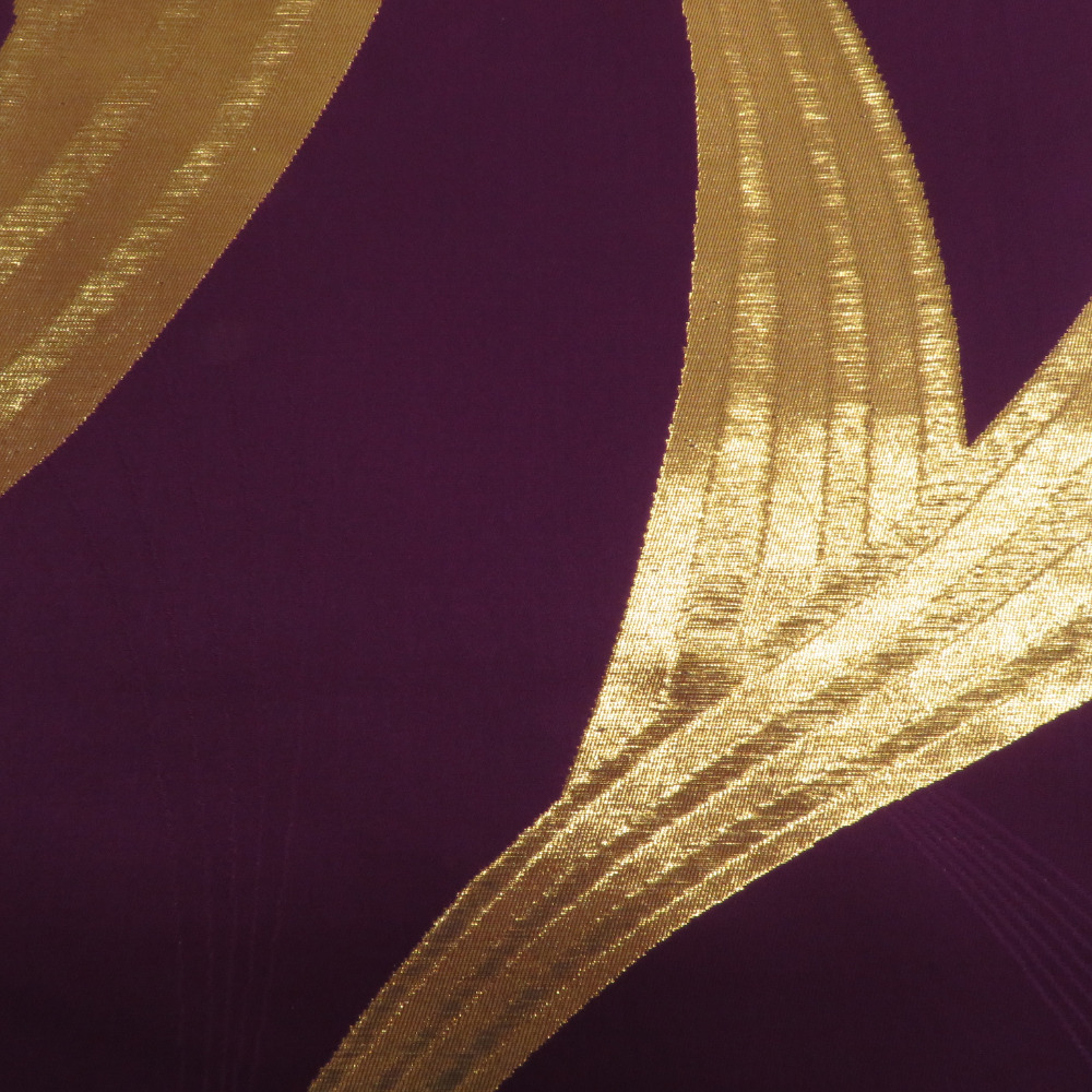丸帯 正絹 金糸 紫色x金色 両面 波模様 全通 仕立上がり 長さ448cm |