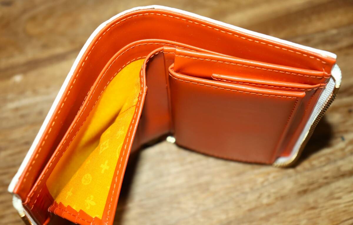 仕様:L字ファスナー式開閉/内側:札入れ×2/スナップボタン式BOX型小銭入れ×1