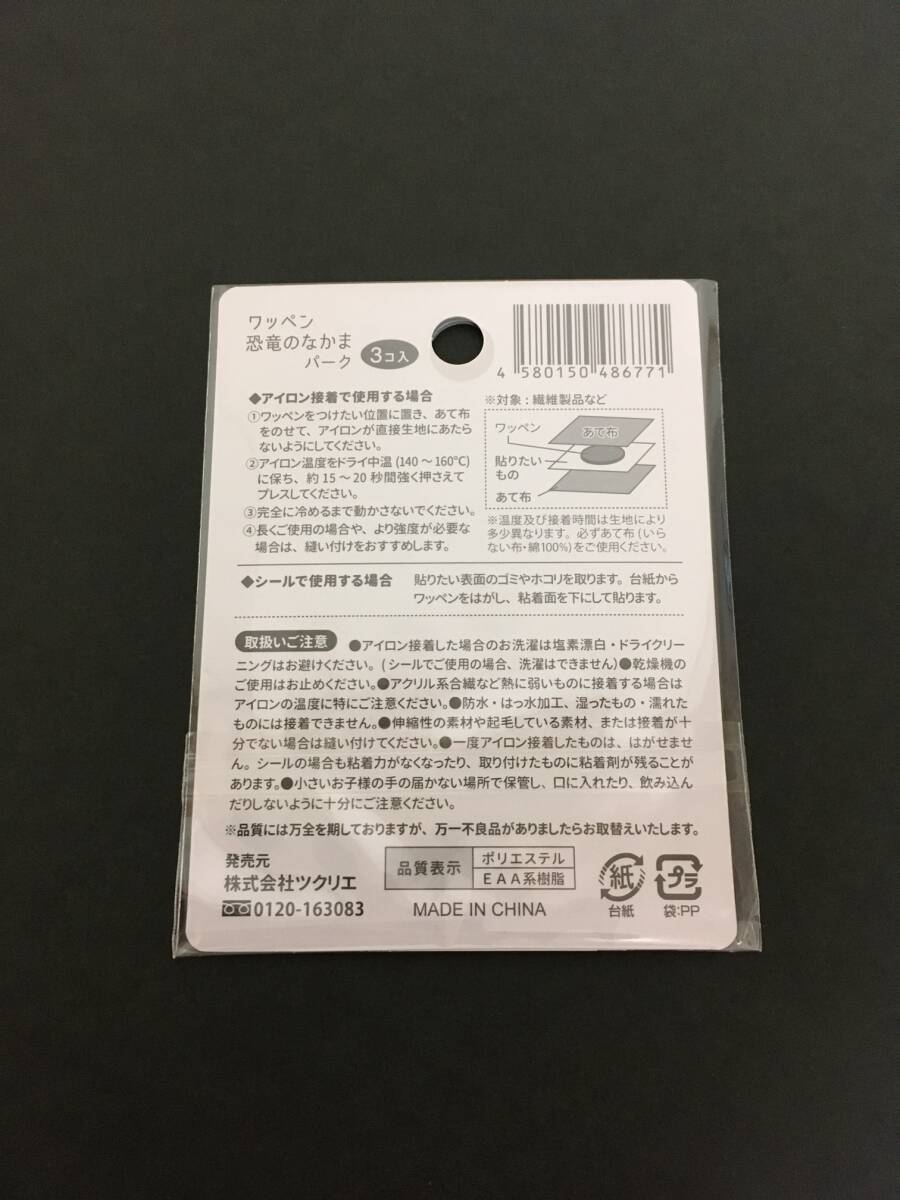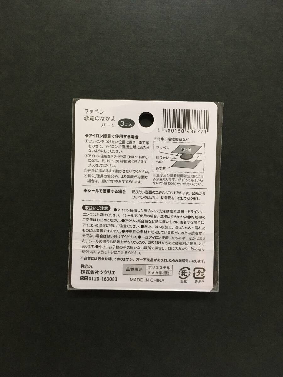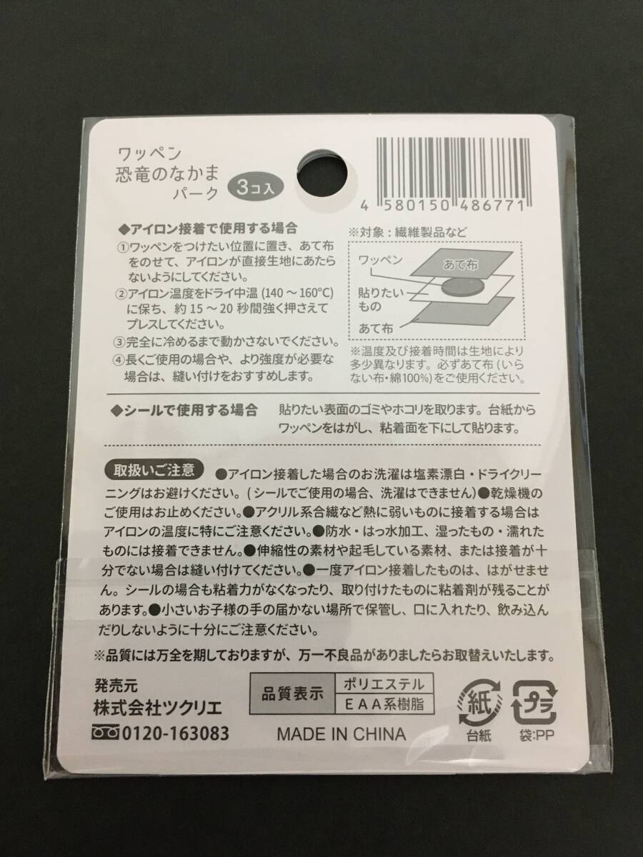 ツクリエ ワッペン☆彡 恐竜のなかま パーク②☆ 3P ダイナソー DINOSAUR 刺繍 シール アップリケ 新品未開封品