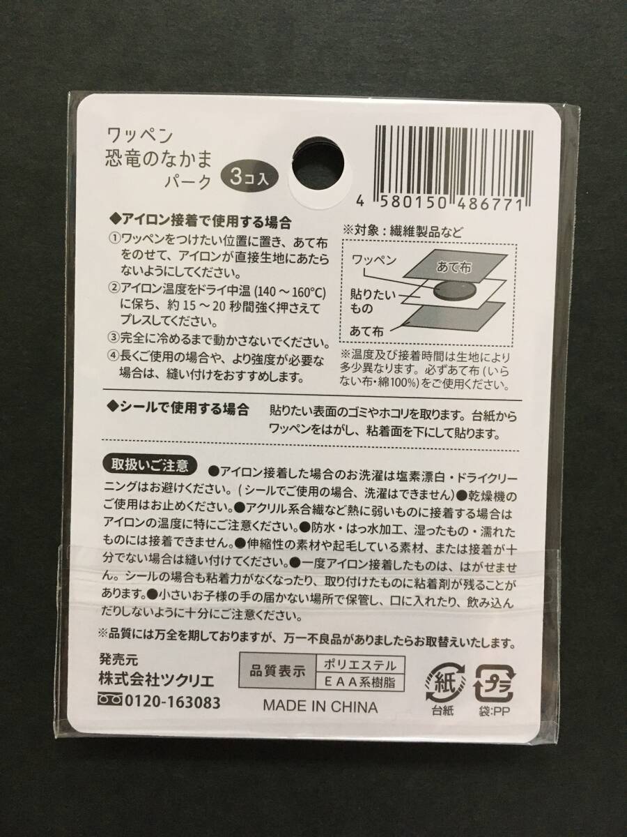 ツクリエ 恐竜のなかま パーク② Pセット ワッペンです☆彡