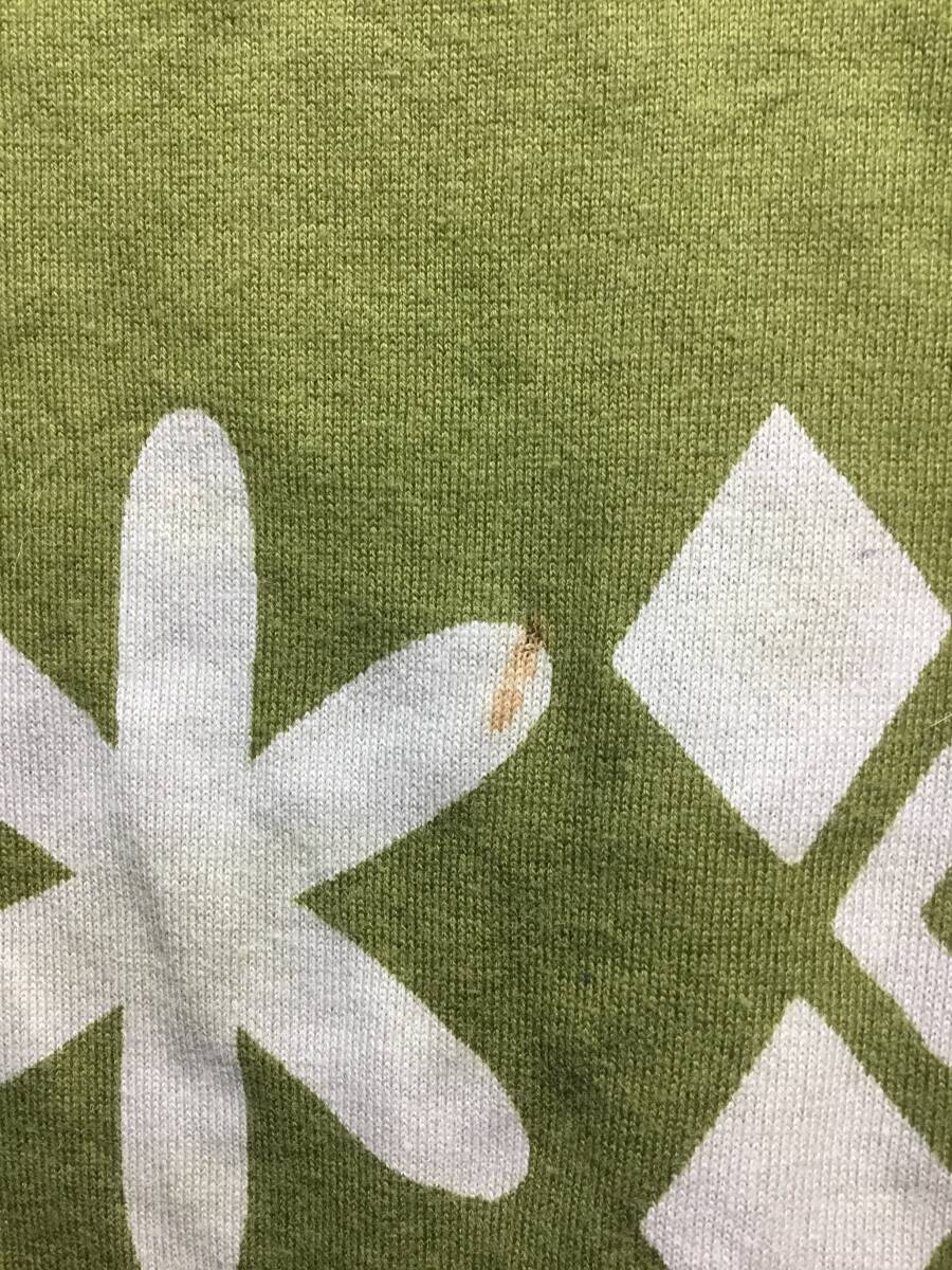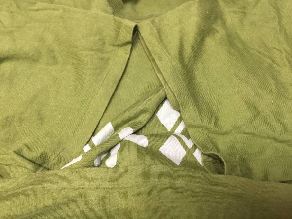 サイズは表記 XL。実寸平置き肩幅約56.5cm身幅約460cm袖丈(脇下から袖口)約15.5cm肩から袖口約26.5cm背面着丈約79cmです。状態は使用感、しわ、ピンホール、細かいシミはあります。普通の古着と思っていただければ平気だと思います。画像よりも若干色味が濃い感じです。いかがでしょうか?NCNRでお願いいたします。自己紹介もお読みください。よろしくお願いいたします