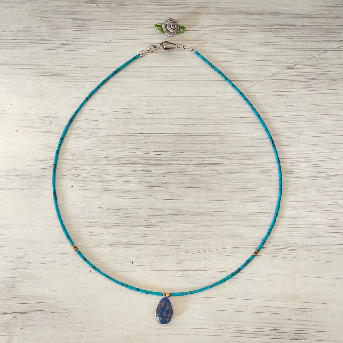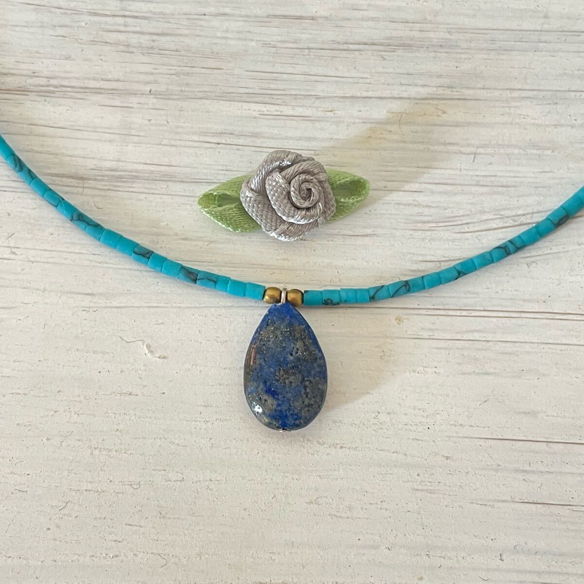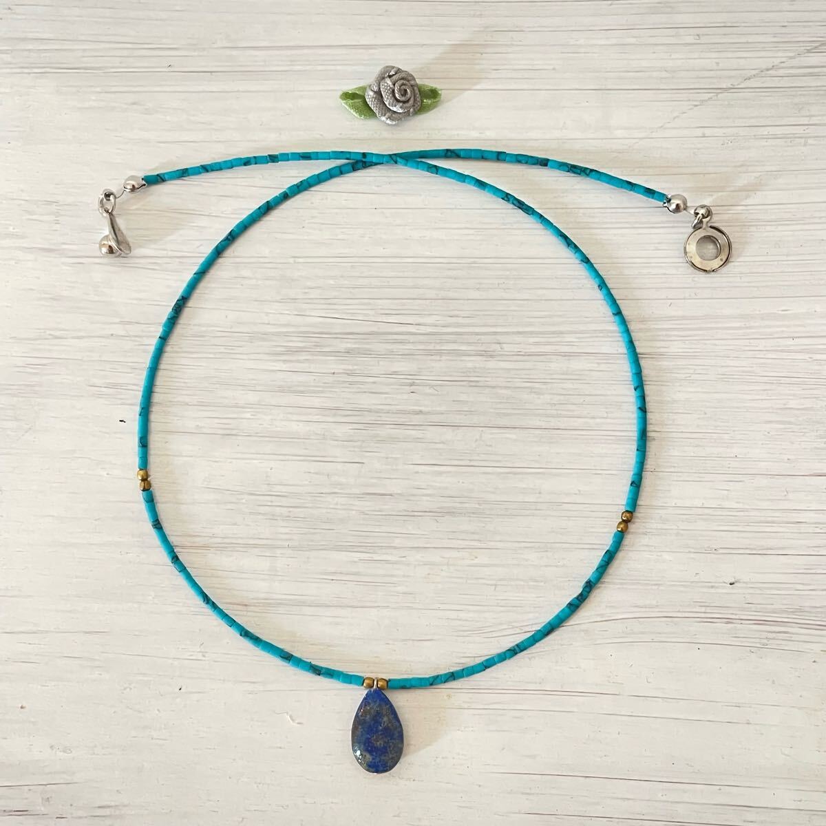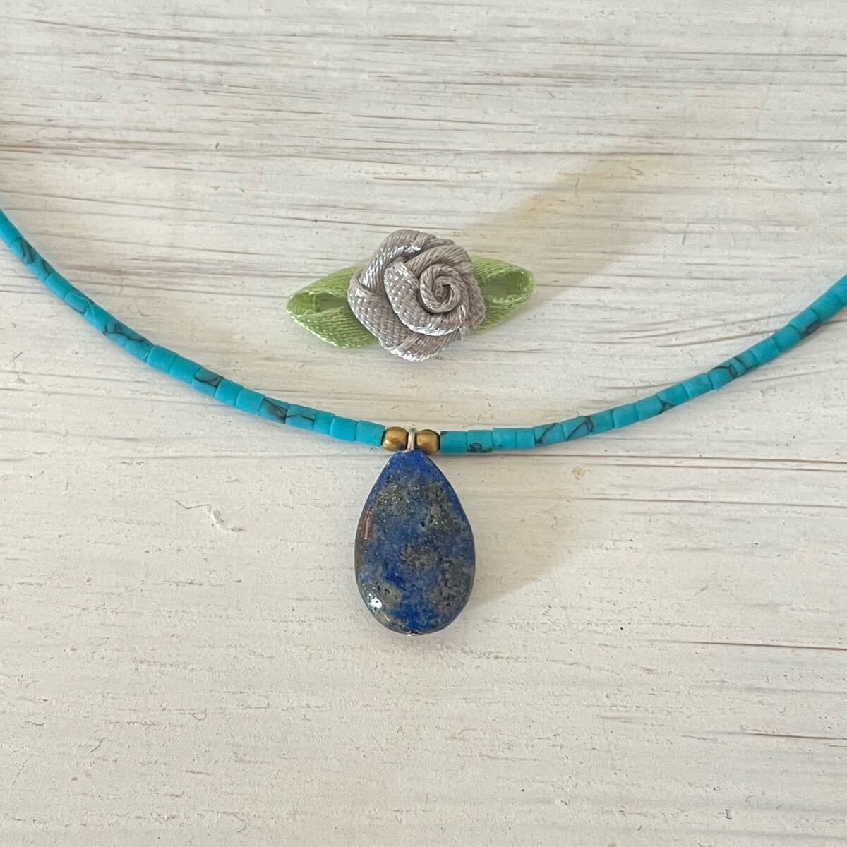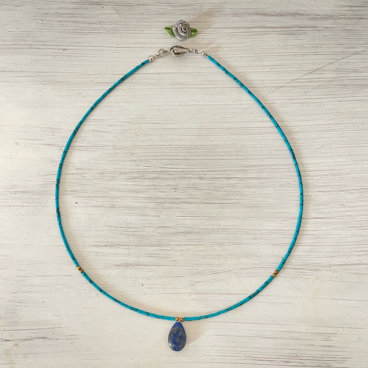 こちらのネックレスは日本では大人気のラピスラズリの涙型のトップにターコイズブルービーズのネックレスです☆
