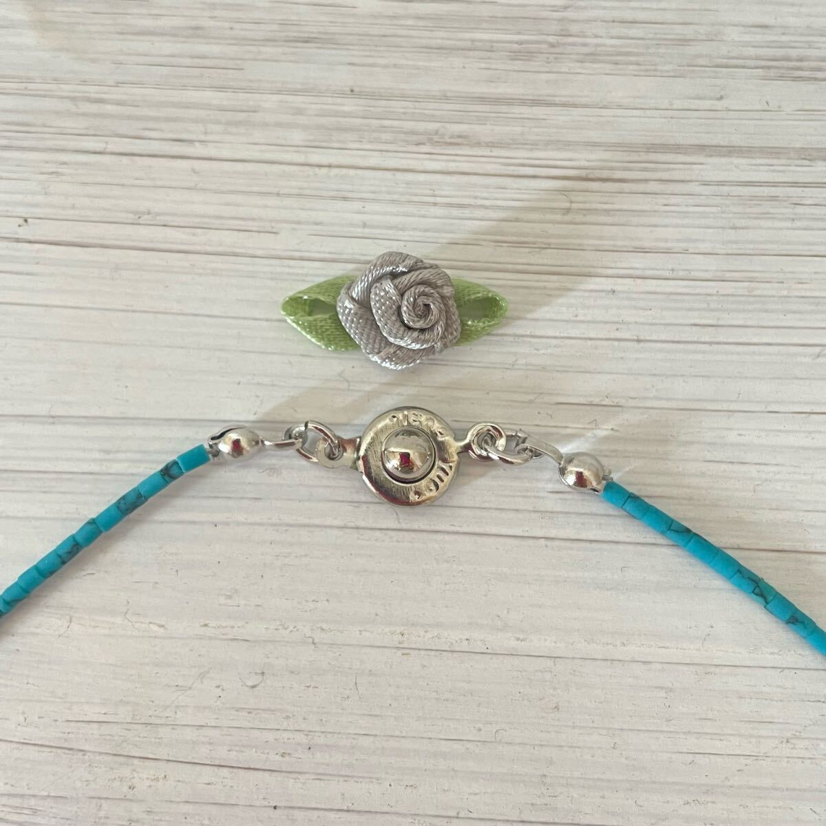 さりげない大きさの涙型(ラピスラズリ)が胸元にあると本当にオシャレさんです。