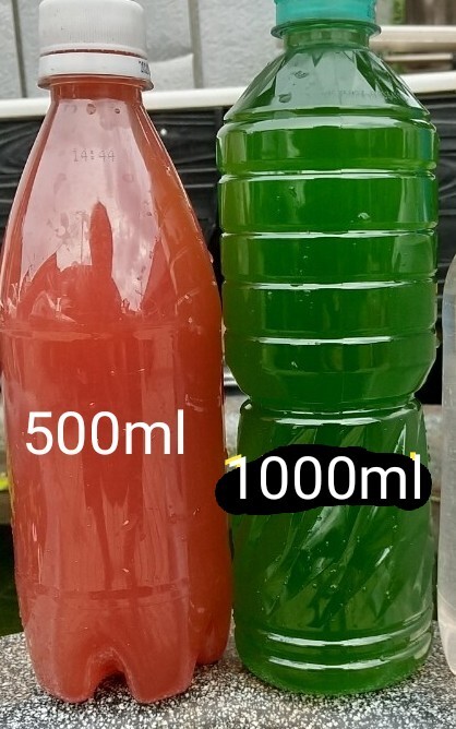 グリーンウォーター1000mlは太陽光をしっかり浴び植物プランクトンによりできた青水になります。。このグリーンウォーターを種水に増やすのも良いしそのまま使うも良いと思います。ペットボトルに入れる時に大きなゴミはネットでとれますが小さなゴミなどは入ってしまうこともあります。。我が家では気にせずそのまま使ってます。稚魚や幼魚など成長スピードも違うような気がします。薬品などを使用してグリーン色にしたものと違い野外にて天然でできた青水になります。我が家でも使用している安全安心なグリーンウォーターです。薬品など使用してないので安心安全です。