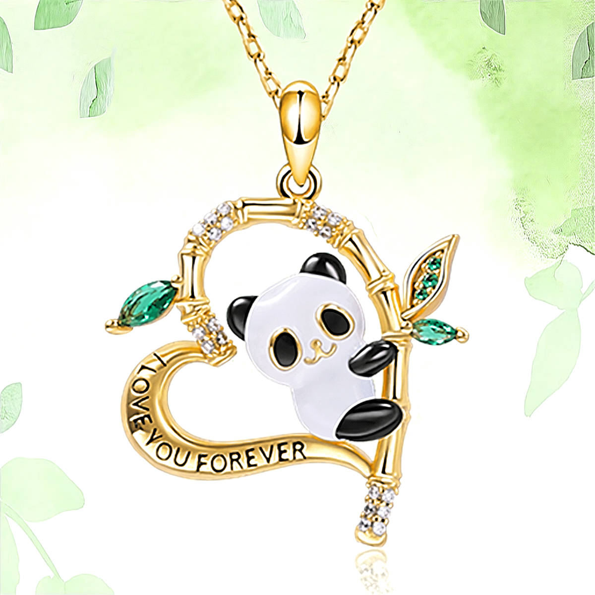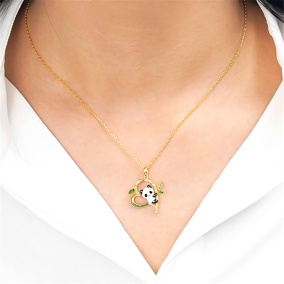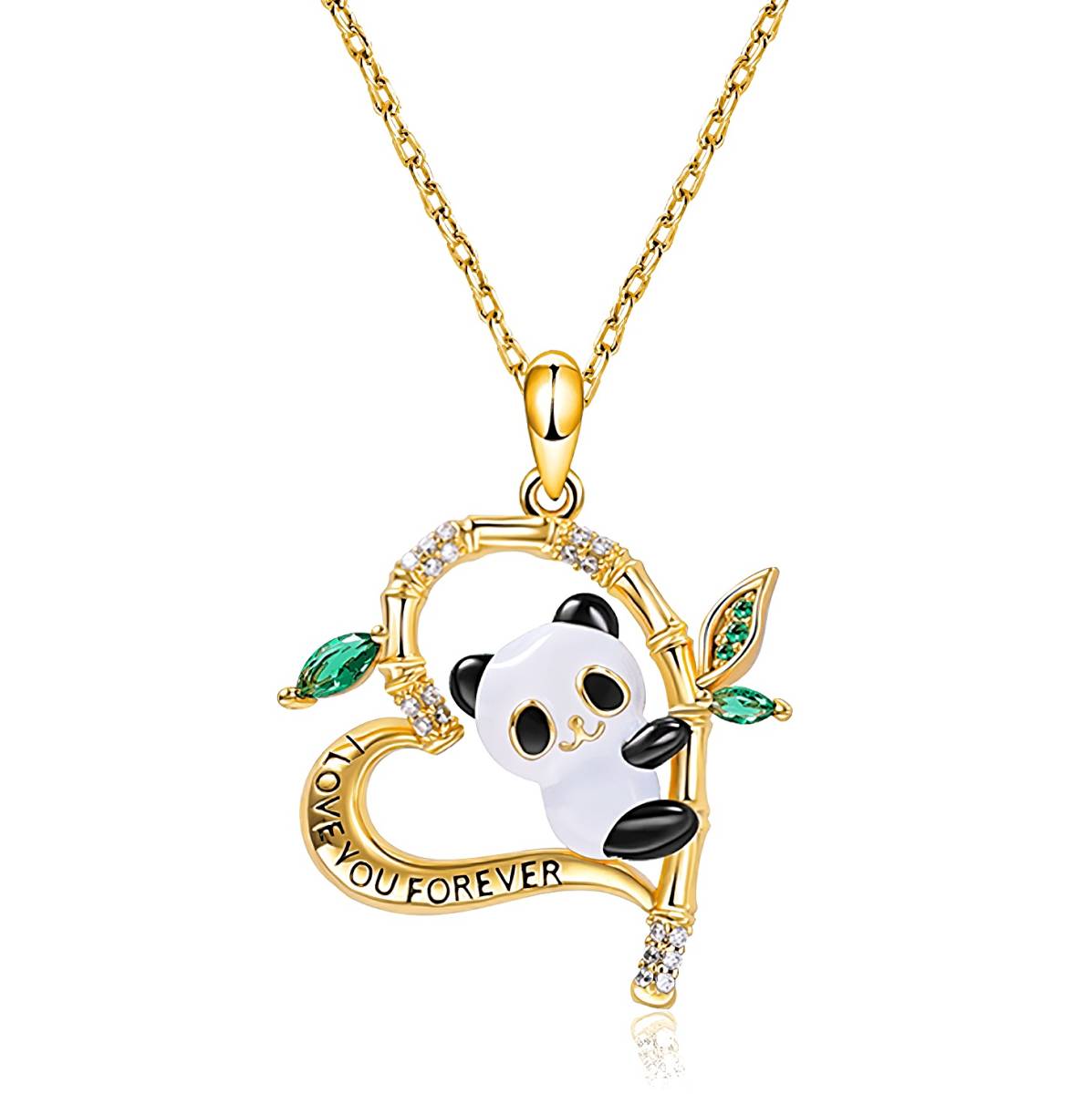新品1円~★送料無料★金の笹 ハート翠玉エメラルド 白黒パンダ登りK18GFゴールドペンダント誕生日プレゼント旅行連休秋祭冬ギフト国内発送