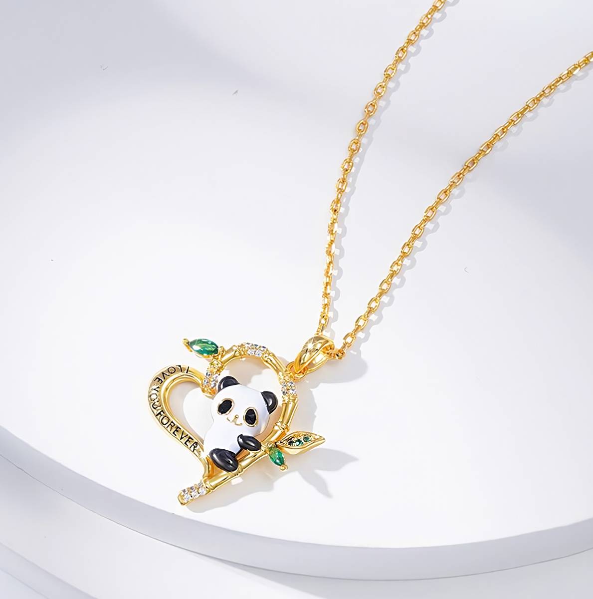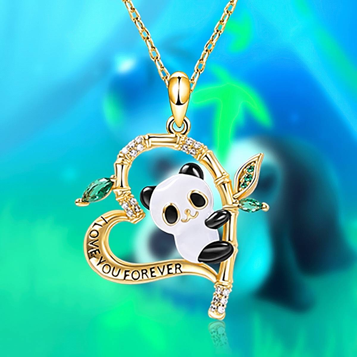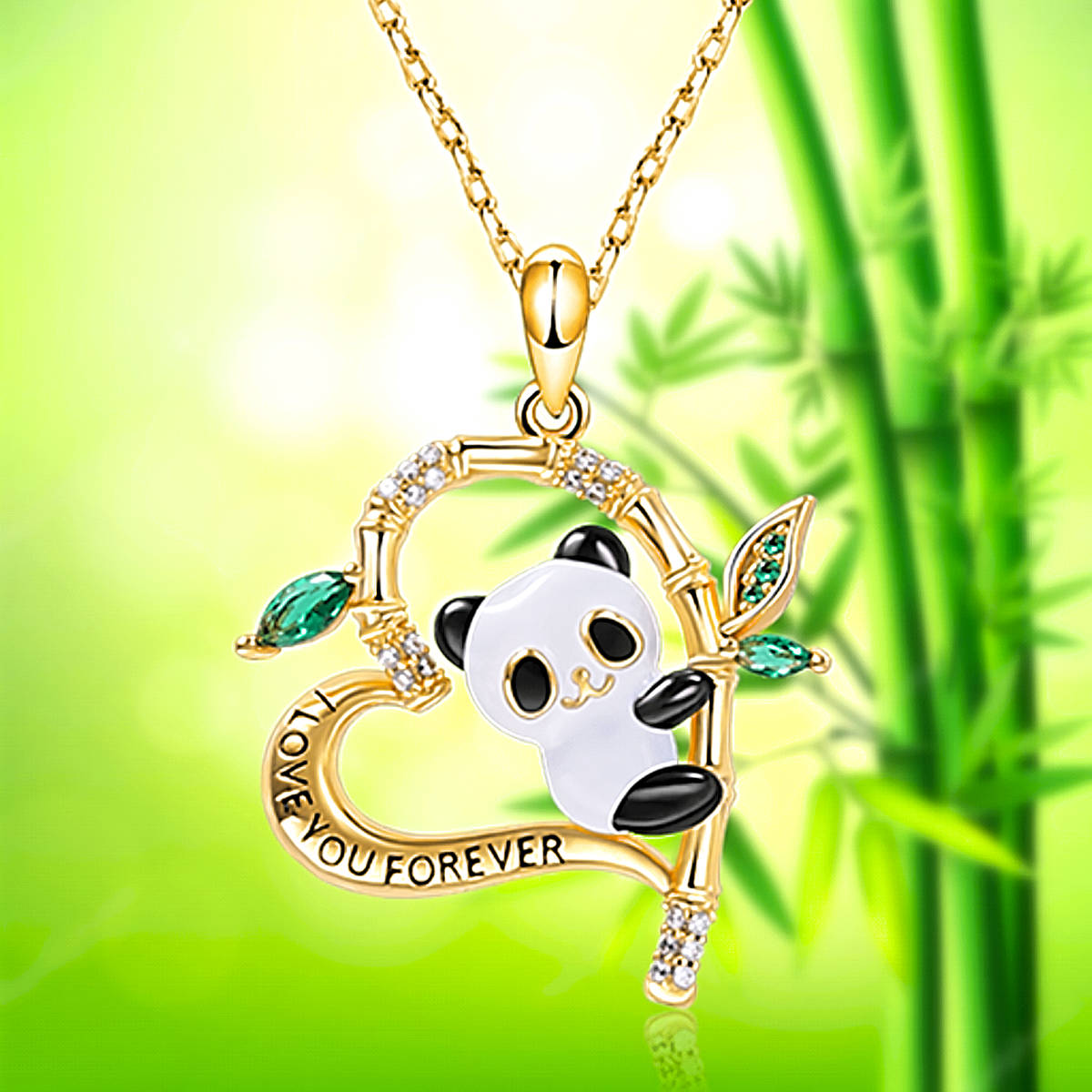 新品1円~★送料無料★金の笹 ハート翠玉エメラルド 白黒パンダ登りK18GFゴールドペンダント誕生日プレゼント旅行連休秋祭冬ギフト国内発送