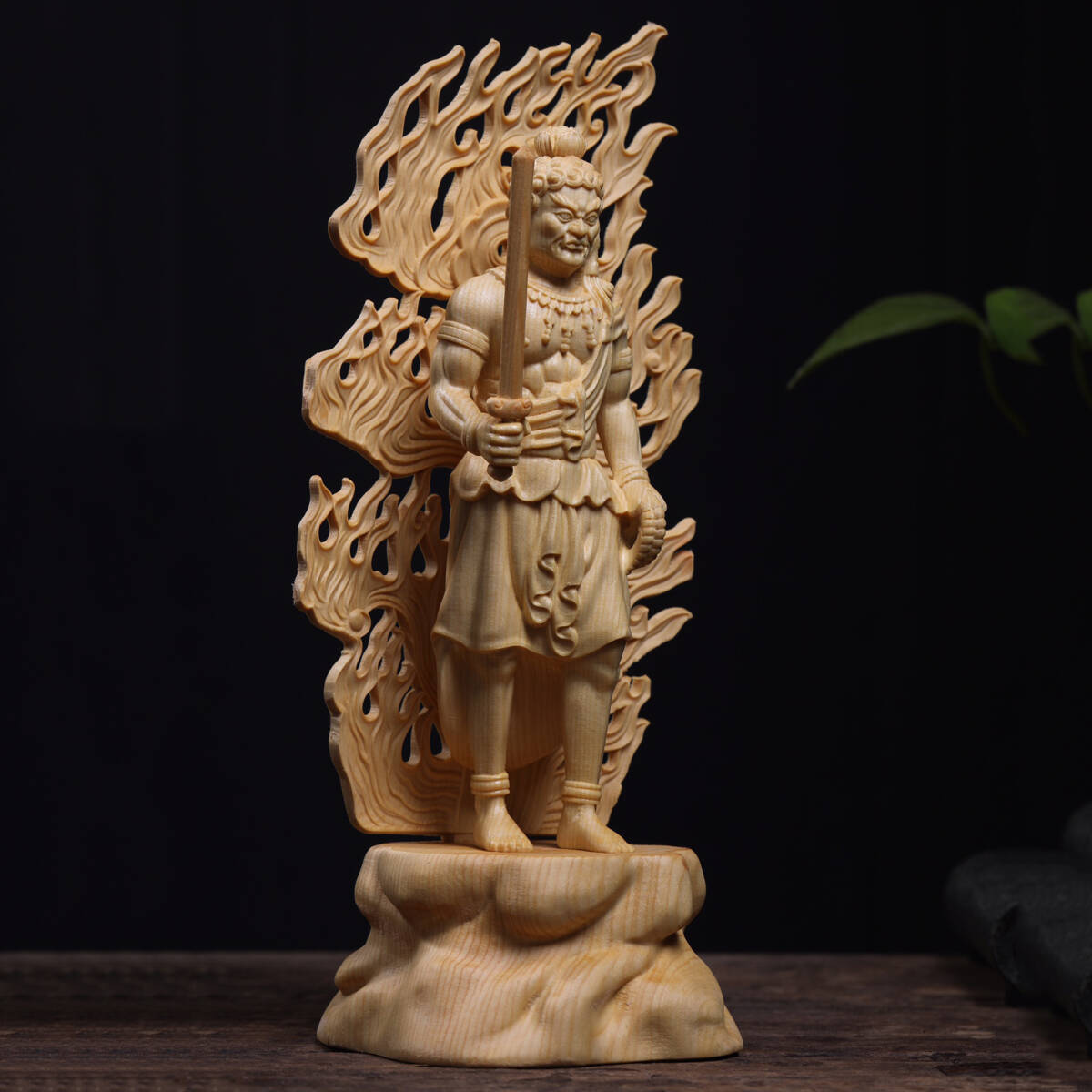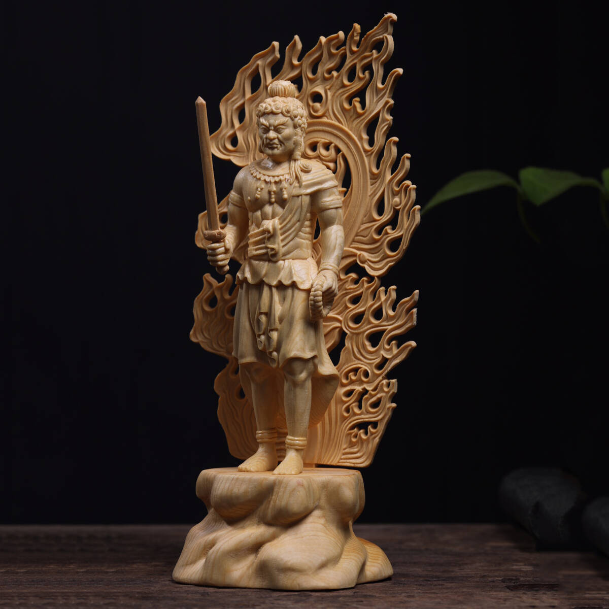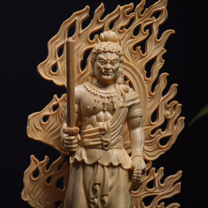 仏像 彫刻精密彫刻 不動明王 木彫 仏像 不動明王像 檜木 高約28cm
