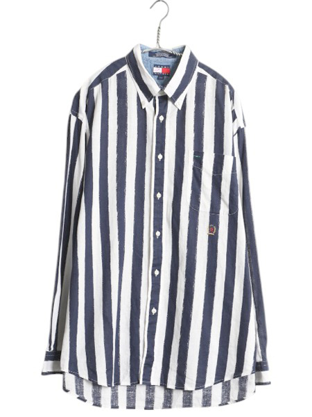 | 商品名 | 90s トミーヒルフィガー ストライプ 長袖 ボタンダウン シャツ メンズ L / オールド BD 長袖シャツ リネン コットン ワンポイント ツートン |