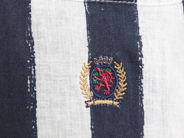 90年代のオールド 当時物 人気ブランド トミーヒルフィガーの長袖ボタンダウンシャツです。 素材は、55% LINEN・45% COTTON 吸湿性が高く、放熱性に優れ、肌に触れたときに 涼しく丈夫な、リネン コットンの混紡 襟内はシャンブレー素材の切替 ストレスなく着ていただける高級素材が使用されています。 人気のボタンダウンスタイル 左胸に綺麗な柄合わせが施されたパッチポケット ポケット下にワンポイントのクレスト刺繍 ハンドペイント風のかすれが入る雰囲気のある 好配色、ネイビー x ホワイトの2トーン ストライプ オールド トミーらしい存在感のあるグッドデザイン こう言った商品はいつでも手に入る物ではありません ゆったりとした人気のシルエット これだけで様になる商品です。 |