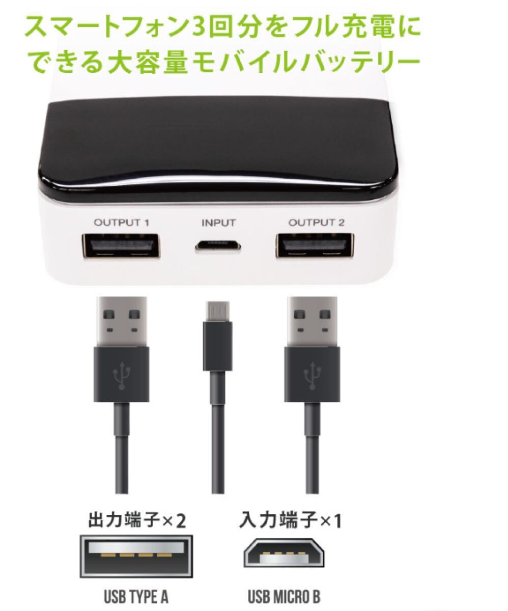PSEマーク付 スマートフォン3回分をフル充電にできる大容量モバイルバッテリー