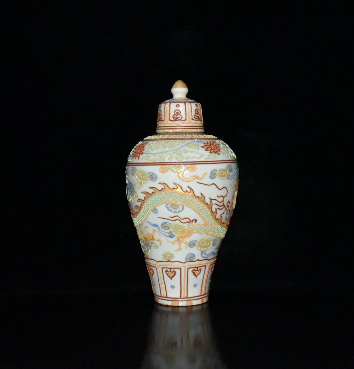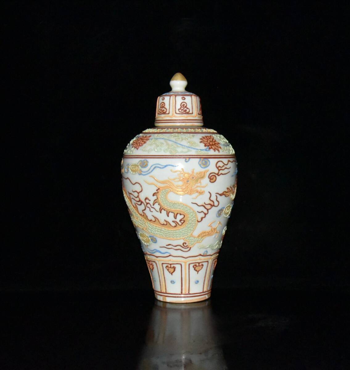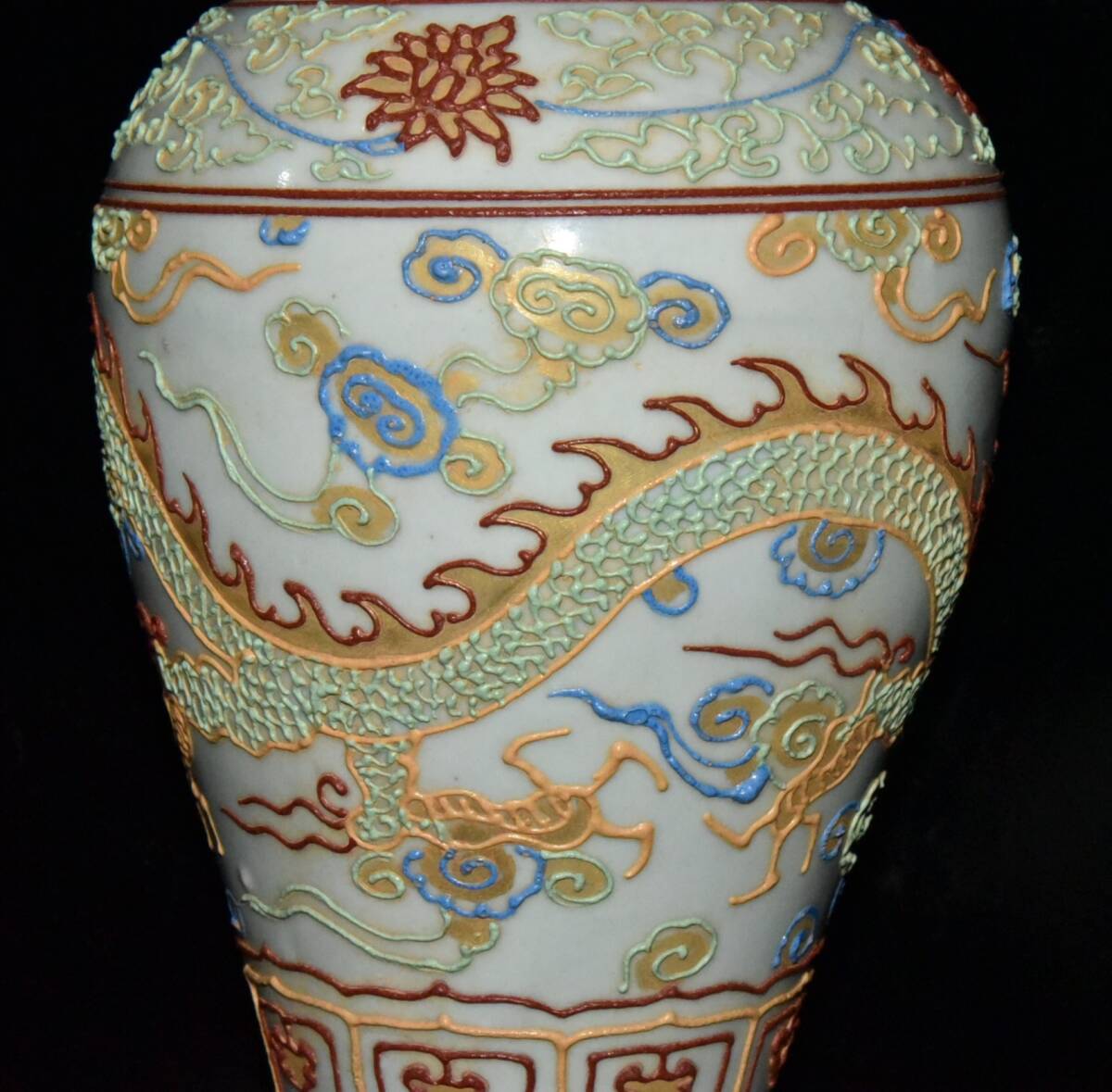 【超珍館蔵】元 古陶瓷品 瀝粉 塗金 龍紋 梅瓶 陶藝 古賞物 古董品 古美術品 時代物 旧家蔵出 稀少珍蔵品
