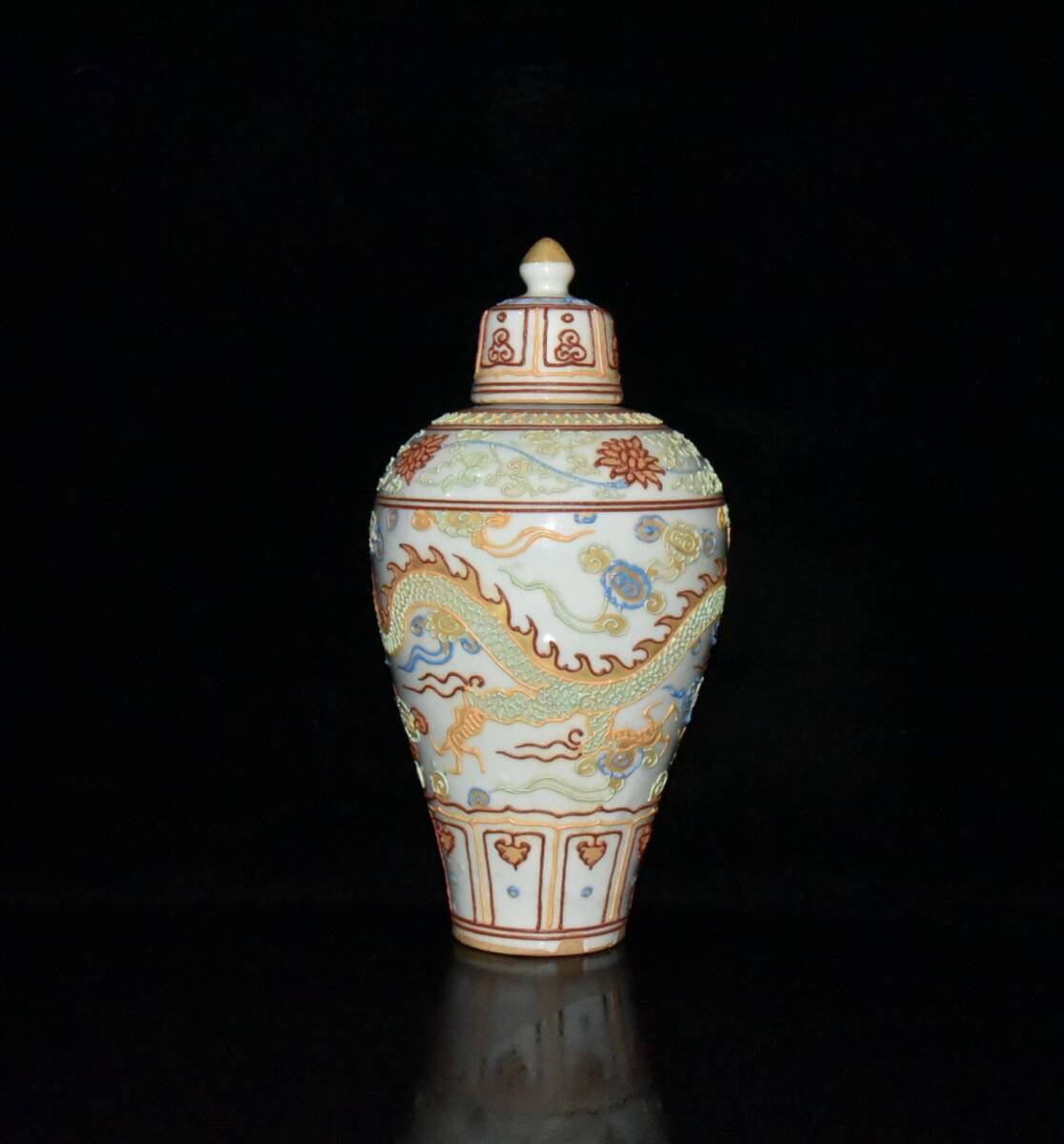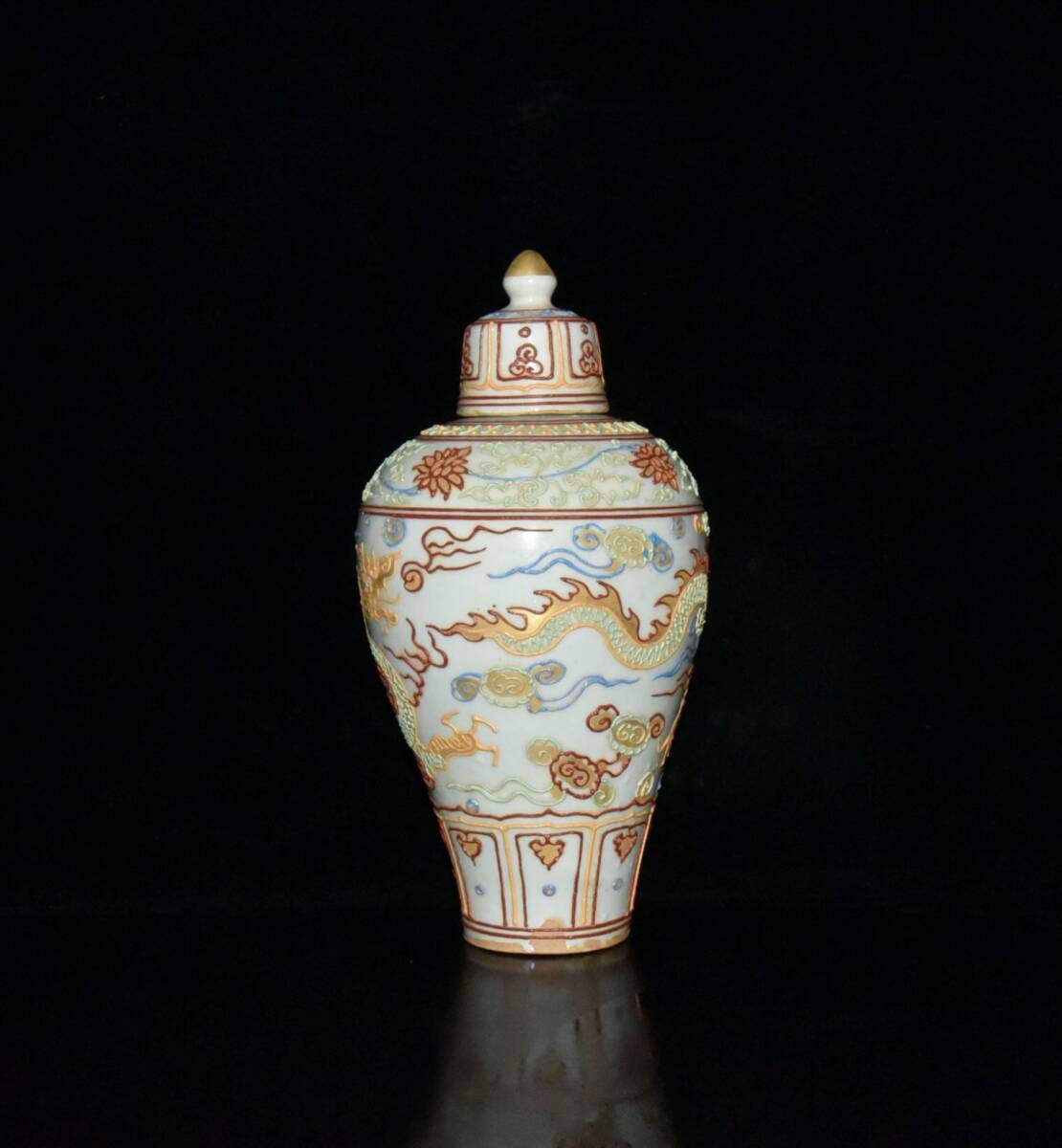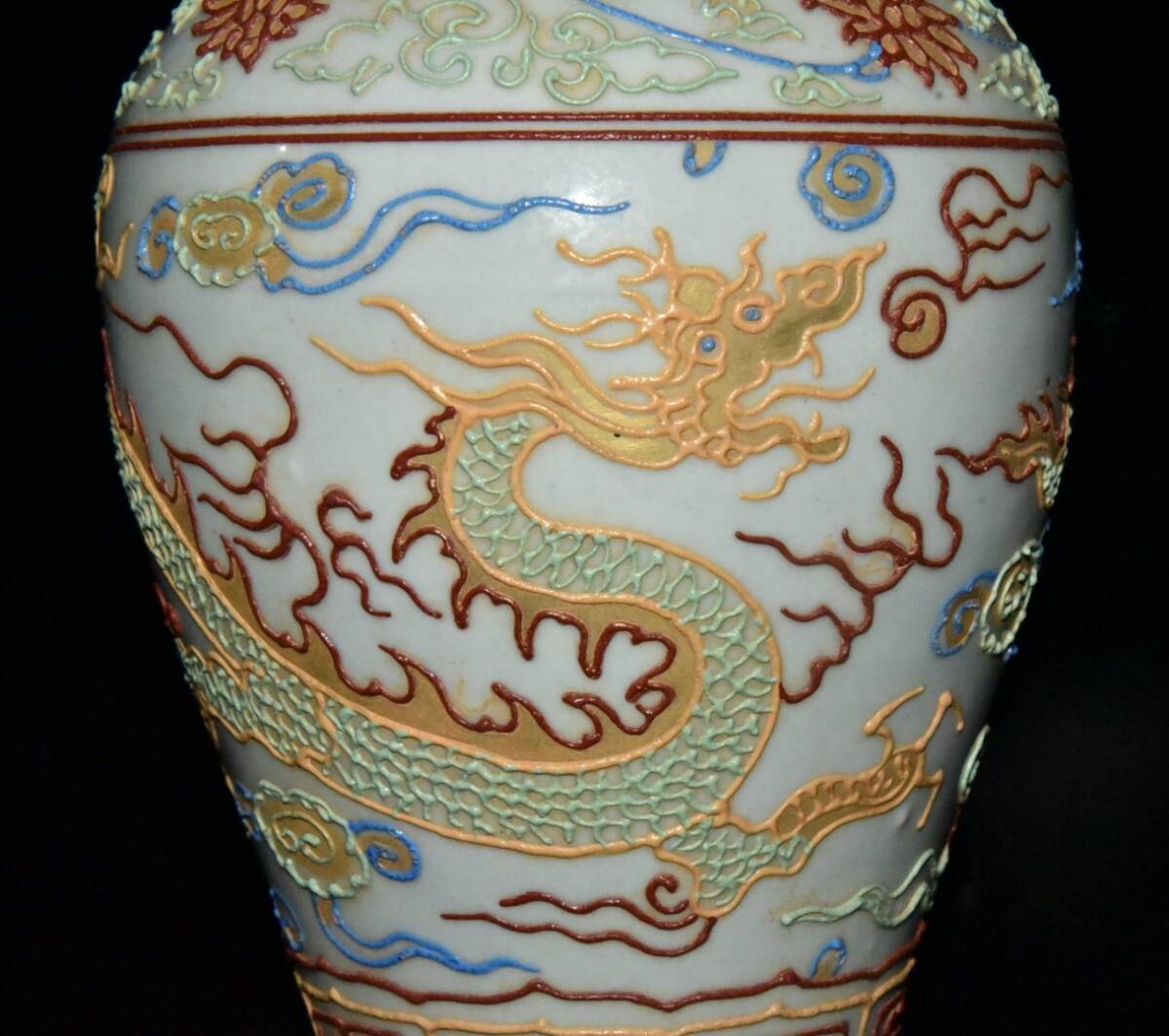 【超珍館蔵】元 古陶瓷品 瀝粉 塗金 龍紋 梅瓶 陶藝 古賞物 古董品 古美術品 時代物 旧家蔵出 稀少珍蔵品