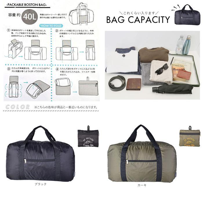 商品説明 | ・・【小さく畳めて大きく使える】 ・コンパクトに持ち運べるのが嬉しい♪40Lのボストンバッグが新発売。 ・【嬉しいパッカブル仕様】 ・内側のポケットに折り畳んで収納できるパッカブル仕様♪コンパクトに持ち運べるのが魅力的。 ・【荷物が沢山入る40L】 ・・2?3泊の旅行に適した40L設計。衣類や化粧ポーチなどもすっぽりと収納できる大容量 ・【キャリーオン機能搭載】 ・バッグ背面にはキャリーの持ち手を通せるキャリーオンベルトを搭載。 ・【ユニセックスで使える】 ・性別年齢を問わずに使えるデザイン!お家に1つあるとみんなで使えて便利◎ ・【多彩なシーンでお洒落に】 ・旅行用だけでなくジム用、子育て中の方用のママバッグなど、様々なシーンで大活躍。 ・【ポケット仕様】 ・メインルーム・・・ファスナーポケット×1 ・フロント・・・ファスナーポケット×1 ・両サイド・・・オープンポケット×1ずつ |
