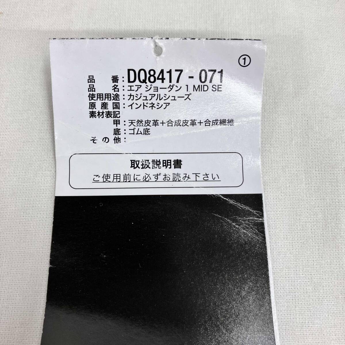 メンズ靴/スニーカー/スニーカー ブランド:NIKE/ナイキ 型番:DQ8417-071 モデル:エア ジョーダン 1 MID SE サイズ:27 |