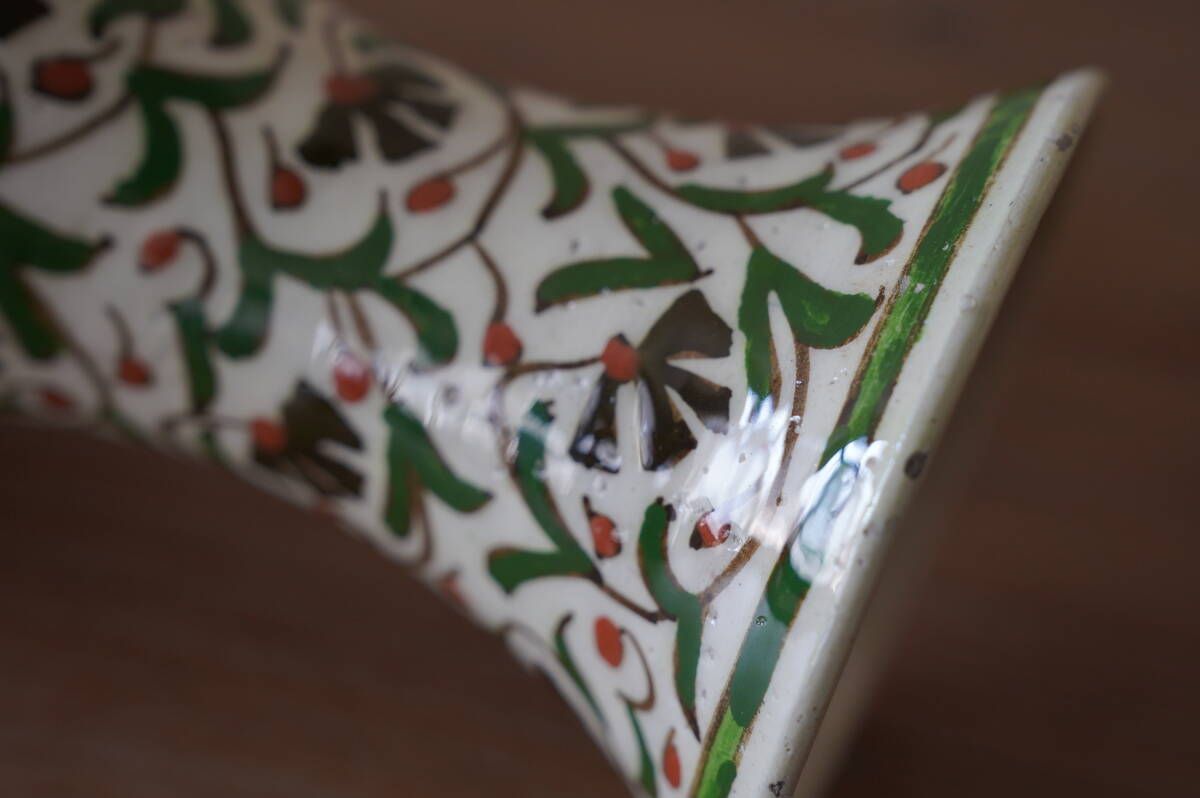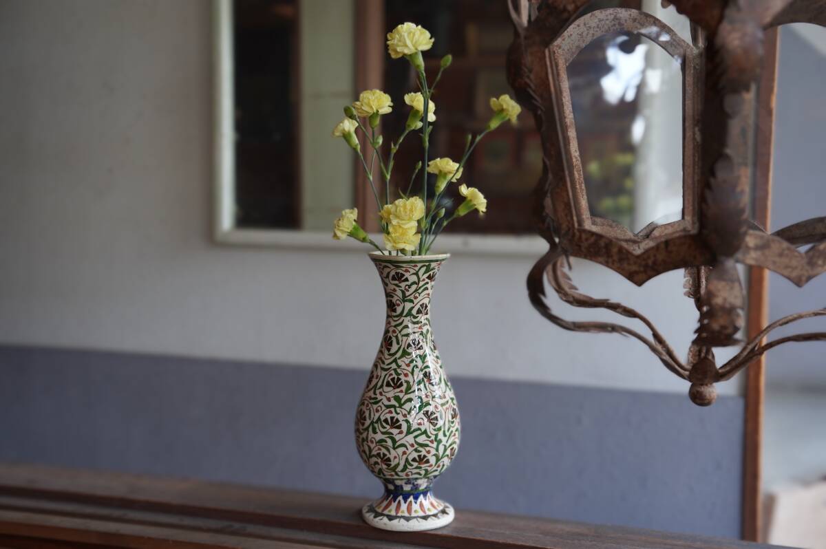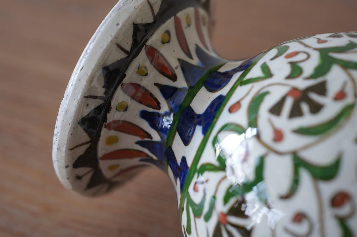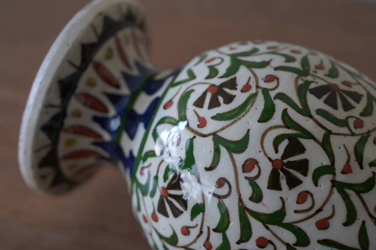 全体に素朴で伸び伸びとしたアラビックなフラワーペイントが手描きで施された、とても可愛らしい花器です。