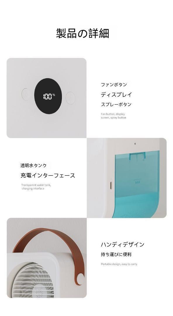 涼しさをキープ:ミストスプレー底部を備えたミストファンは、体に快適な風を提供し、暑い夏の間も涼しく快適に保ちます。