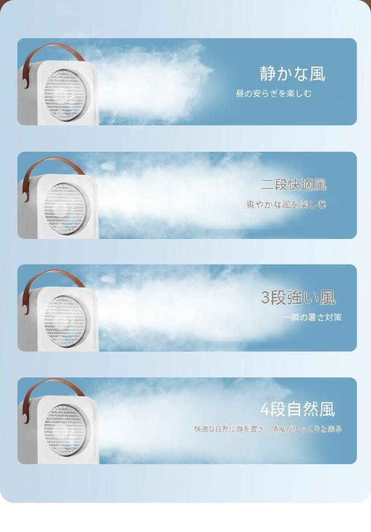 持ち運びが簡単:ミスト付きのポータブルファンは、アウトドアバッグに入れて持ち運ぶのに便利で、いつでもどこでも利用でき、手間がかからず、場所を取りません。