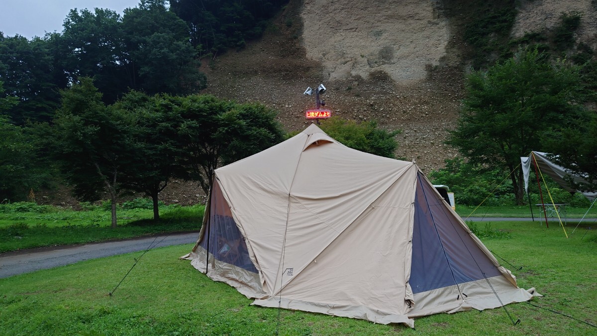 4枚目の写真のように、正面入り口の上部が破け、修理している跡があります。
