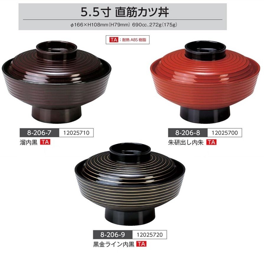 ☆業務用漆器耐熱5.5寸直筋カツ丼朱研出し内朱(約径165X108mm)20個