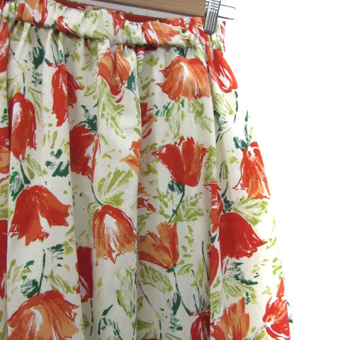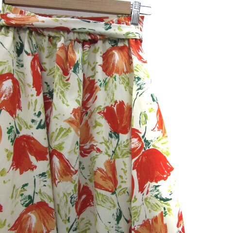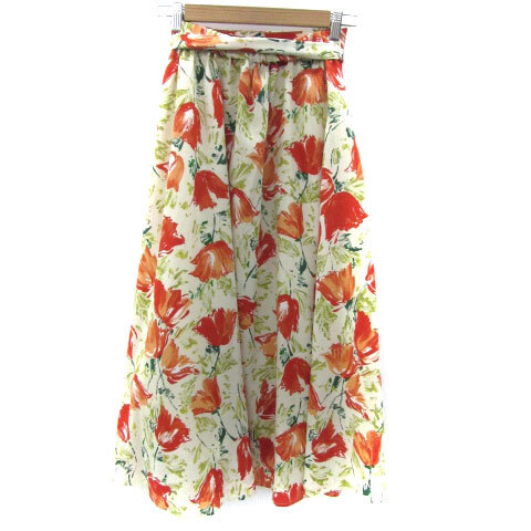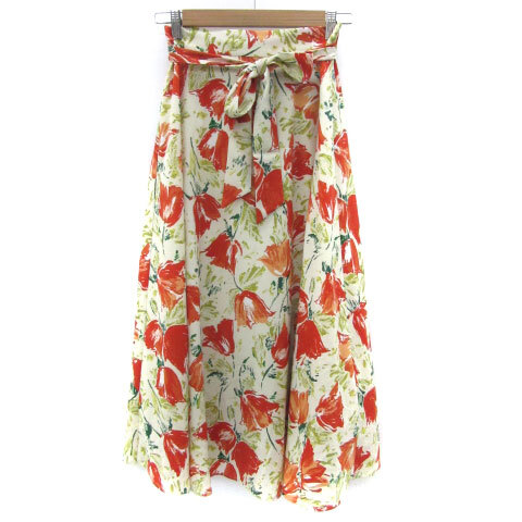 ロペピクニック ROPE Picnic フレアスカート ロング丈 花柄 マルチカラー リボン 38 M オフホワイト 白 /YM11 レディース