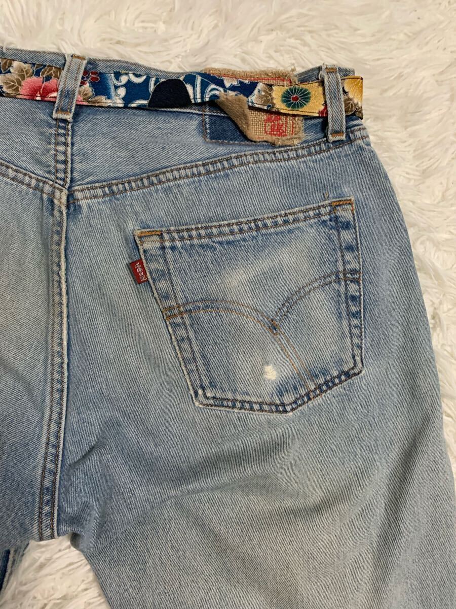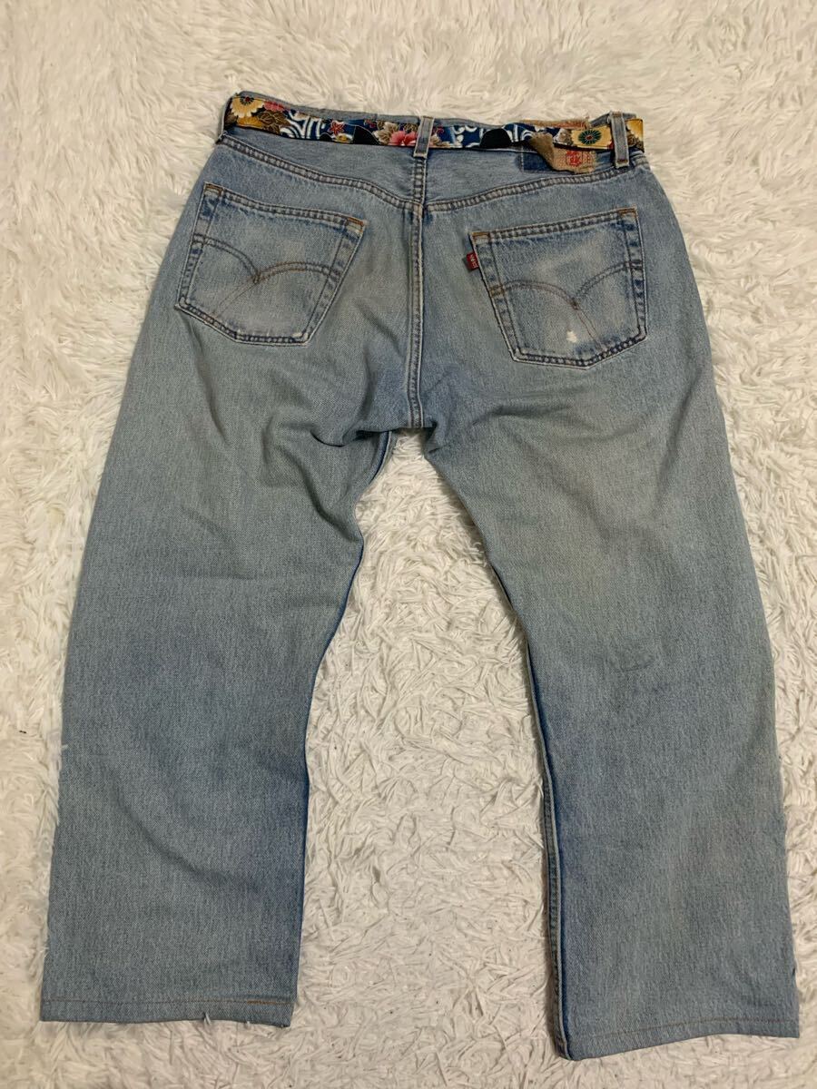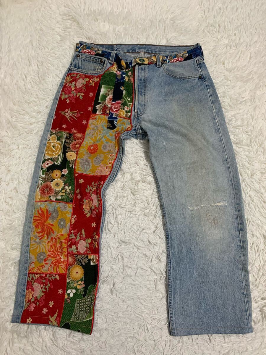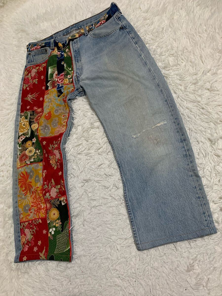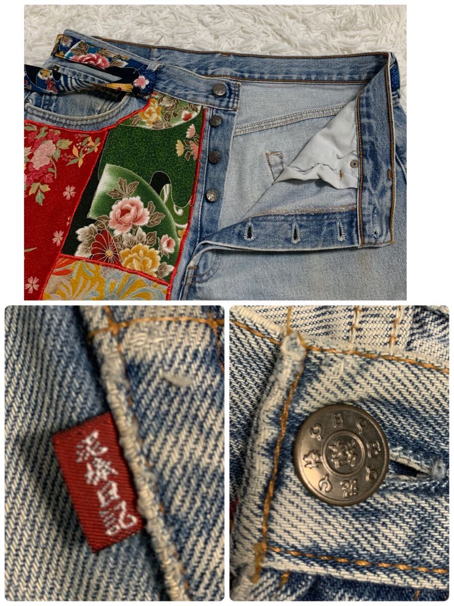 泥棒日記 デニム ジーンズ 和柄 ダメージ加工 FREE