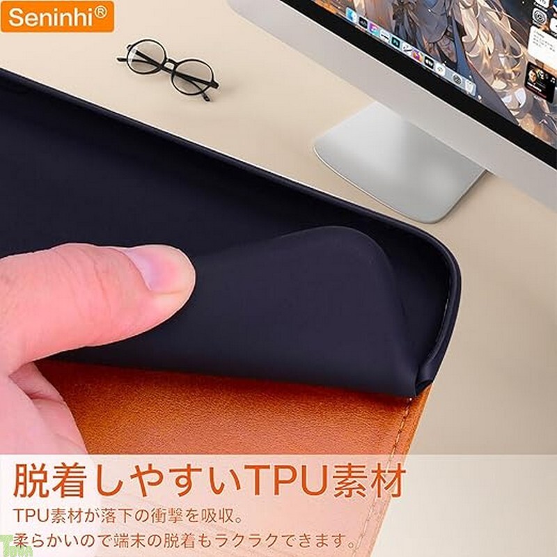 ケースは上質なPUレザーを採用して作られており通常の合成皮革よりも強く均一なラインです。