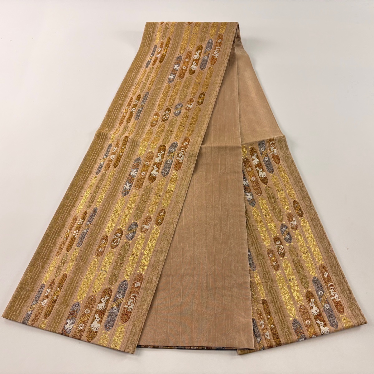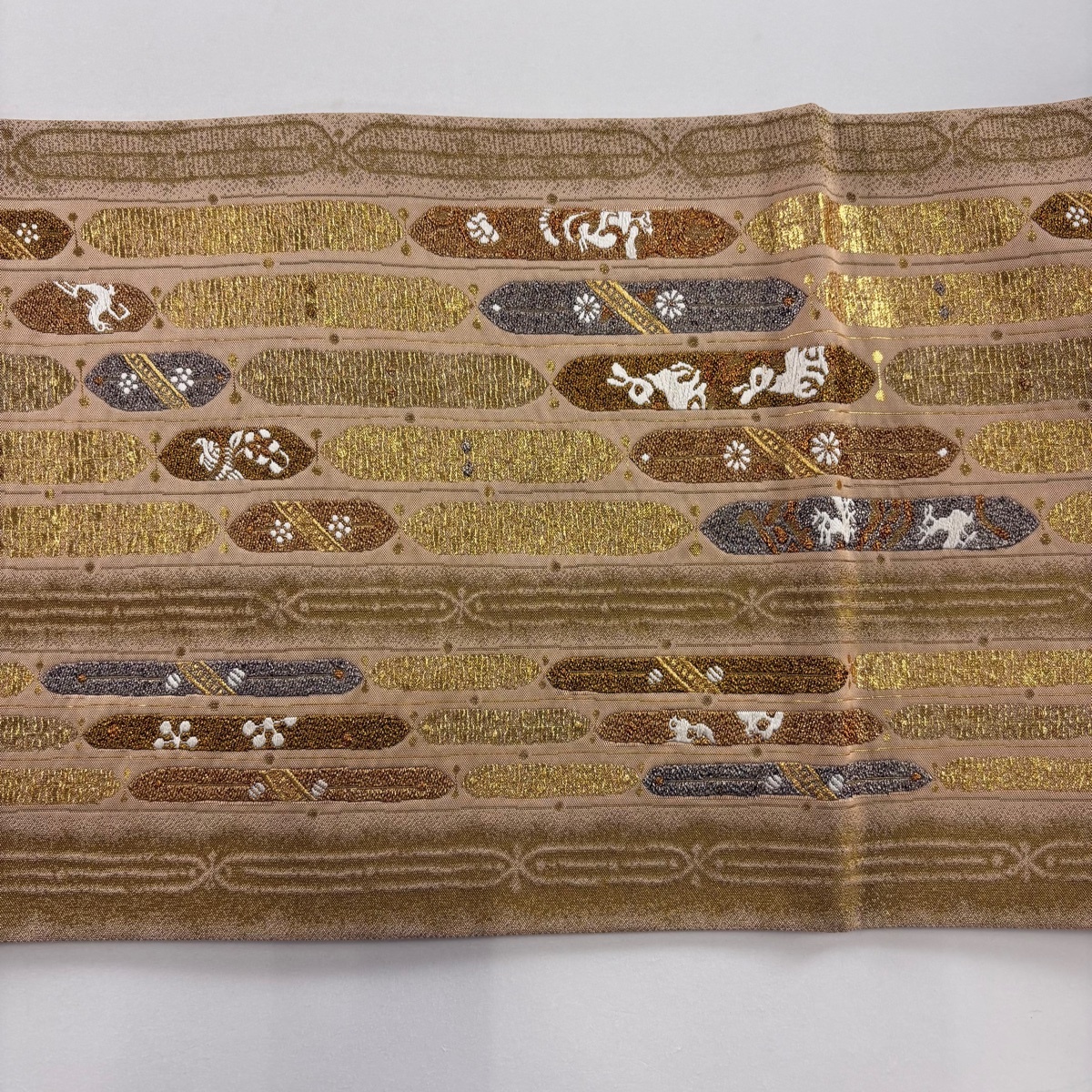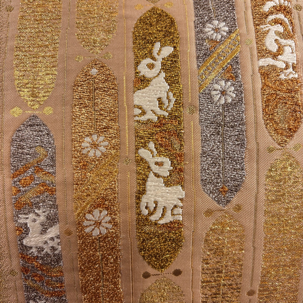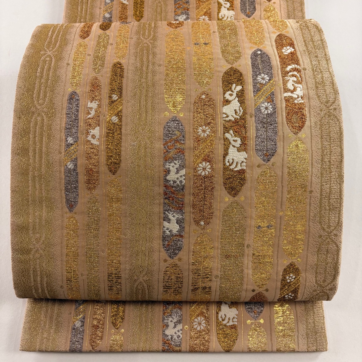 | 袋帯 美品 名品 うさぎ 花 箔 薄茶色 六通 正絹 【中古】 |