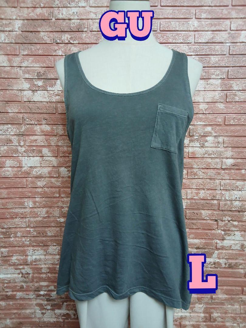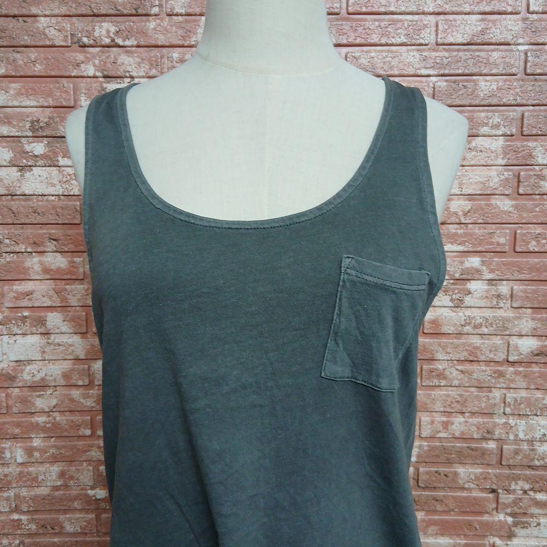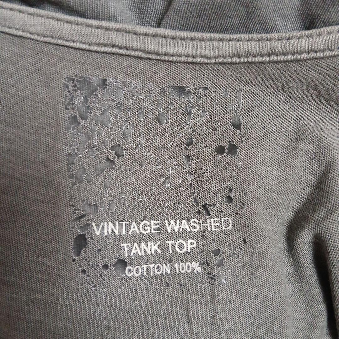 【GU】ヴィンテージ ウォッシュド コットン タンクトップ グレー L