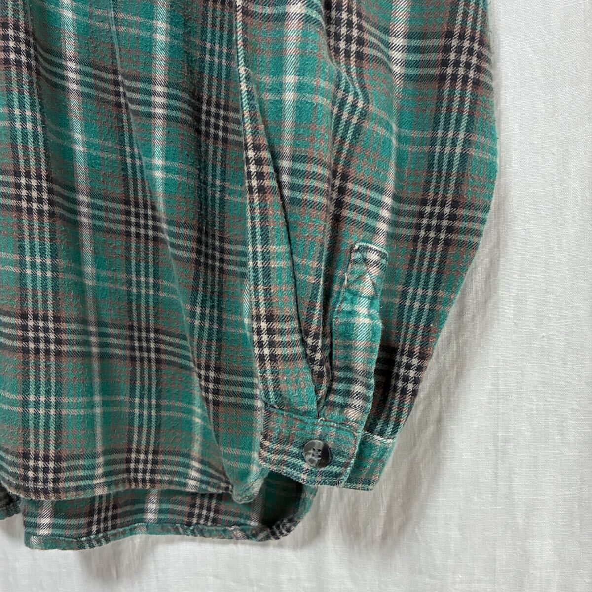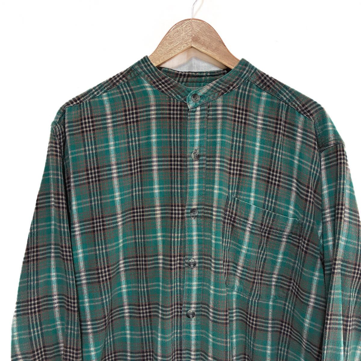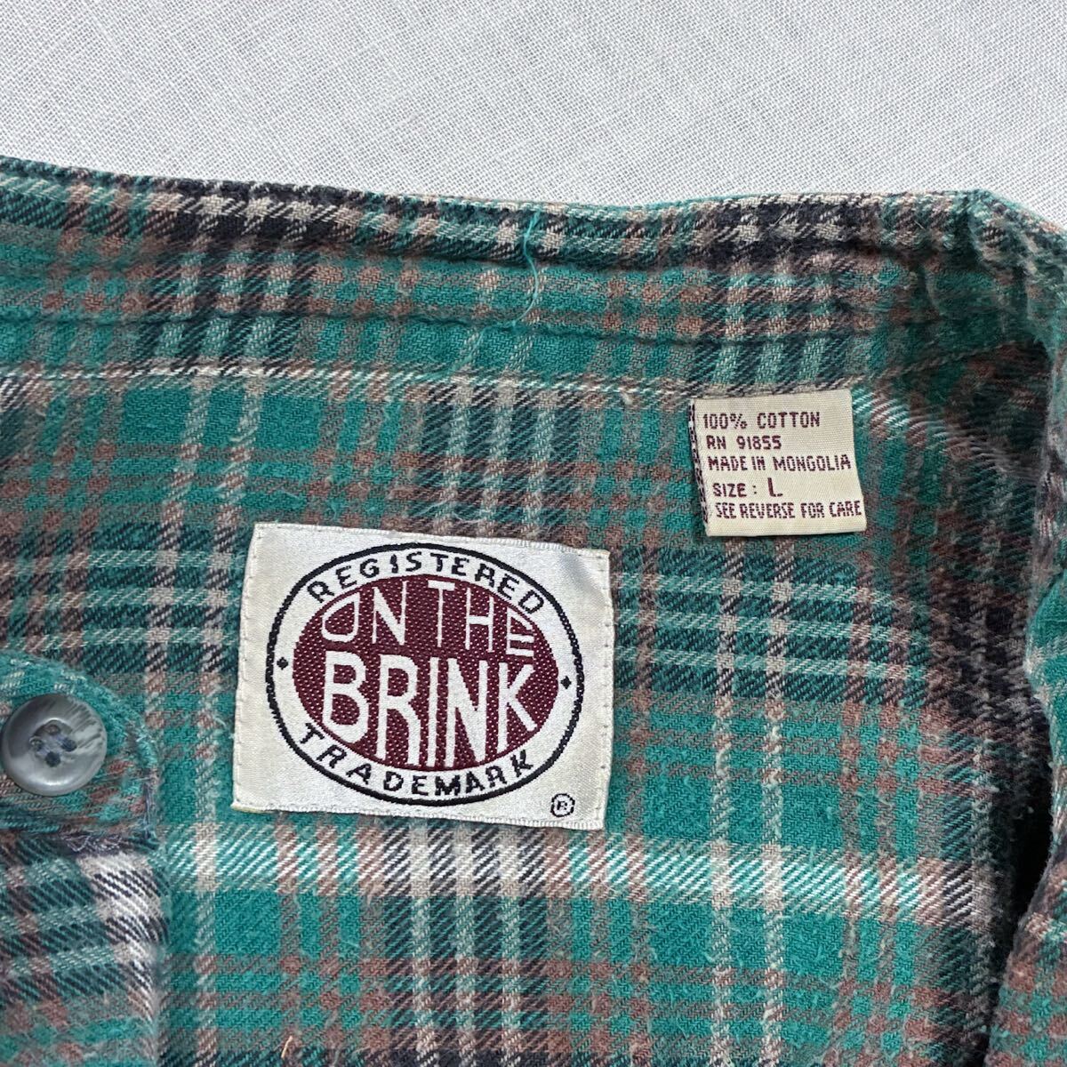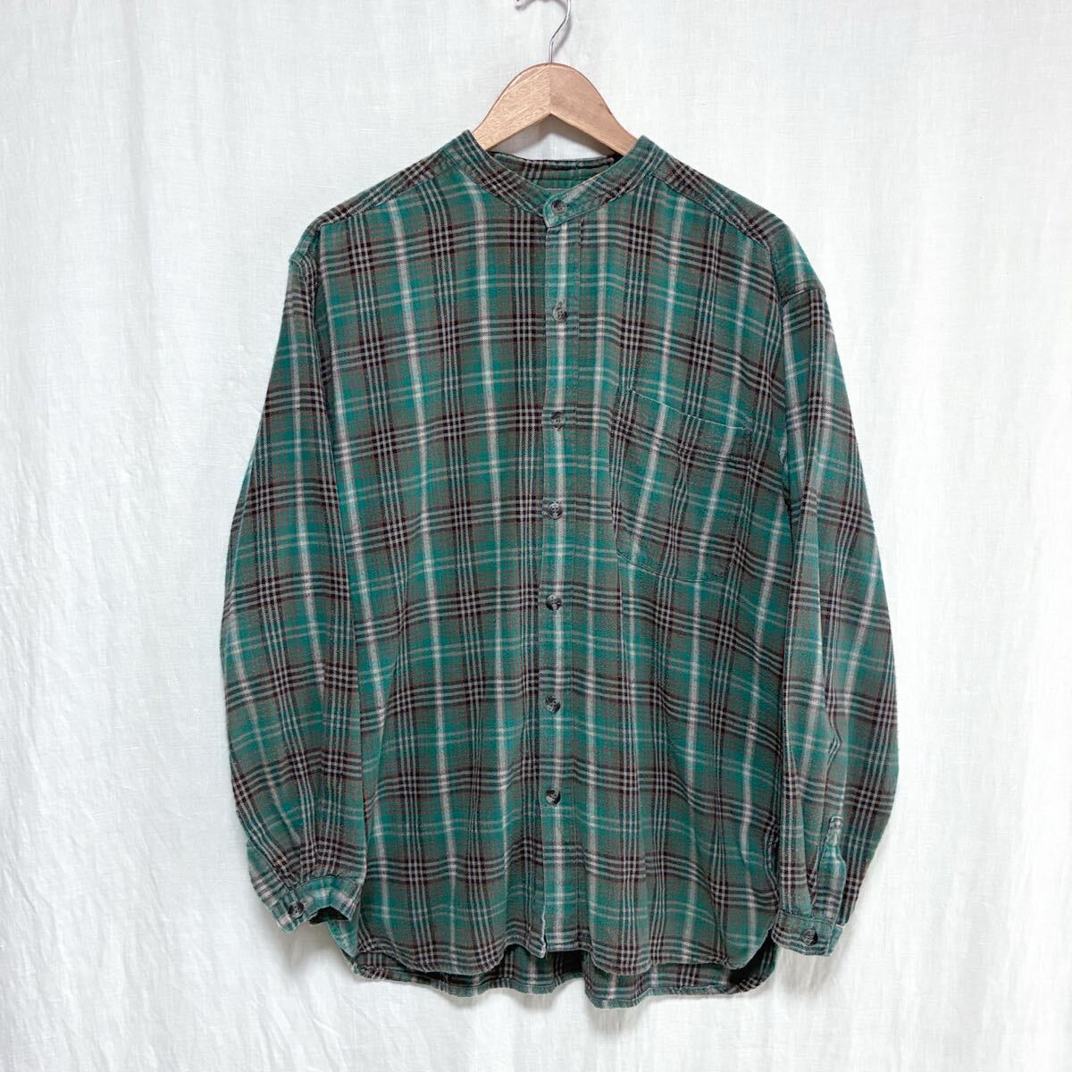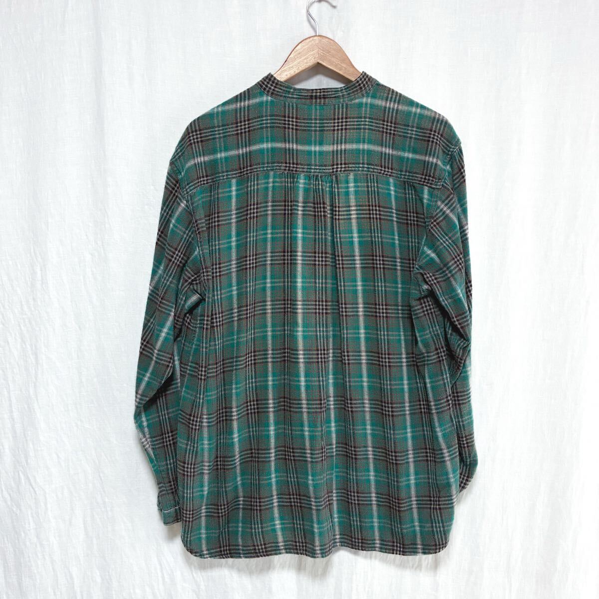 90s ON THE BRINK ノーカラー チェック ネルシャツ Lフランネル ヴィンテージ ユーロ