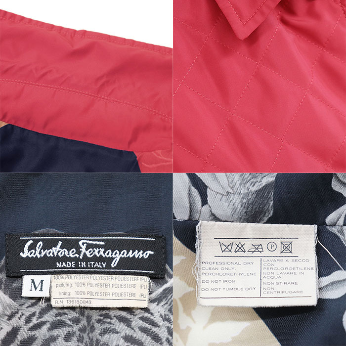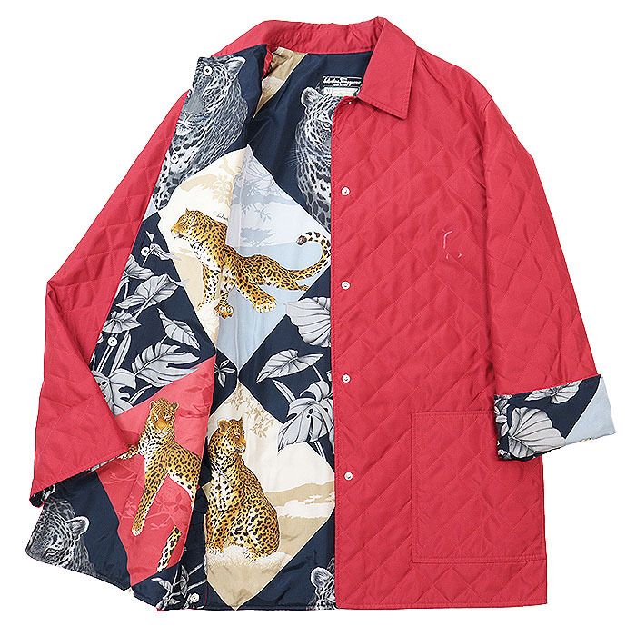 【SALE】Salvatore Ferragamo サルヴァトーレ フェラガモ ジャケット キルティング ロゴ ボタン 中綿 レオパード レディース M 赤 伊製