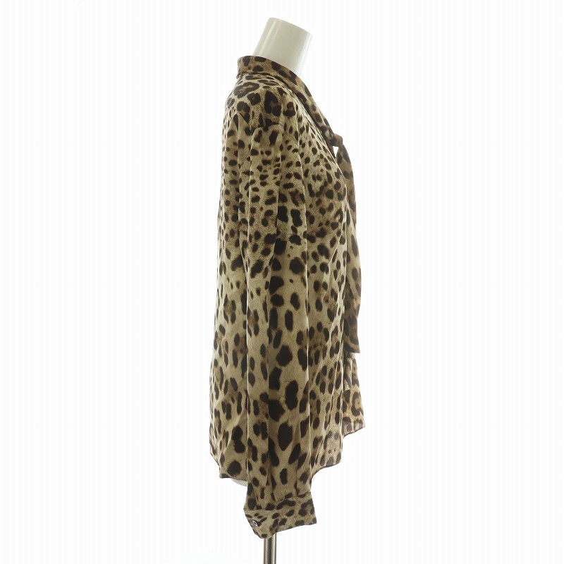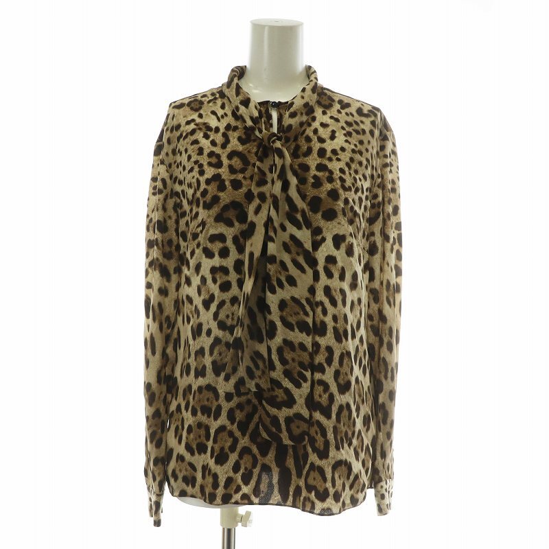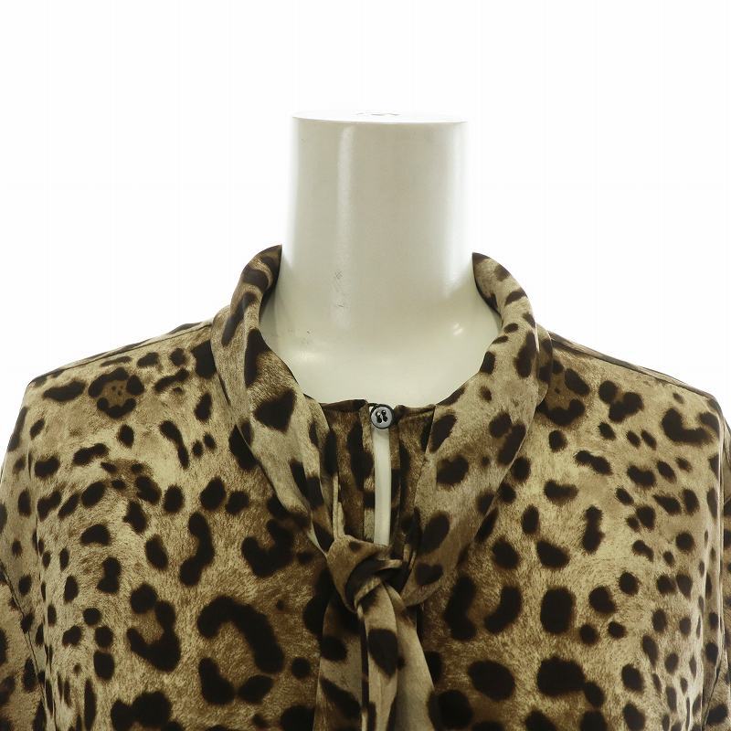 DOLCE&GABBANA セットアップ ブラウス シャツ シルク 長袖 ボウタイ フレアスカート ひざ丈 ヒョウ柄 レオパード 36 XS 40 M 茶色