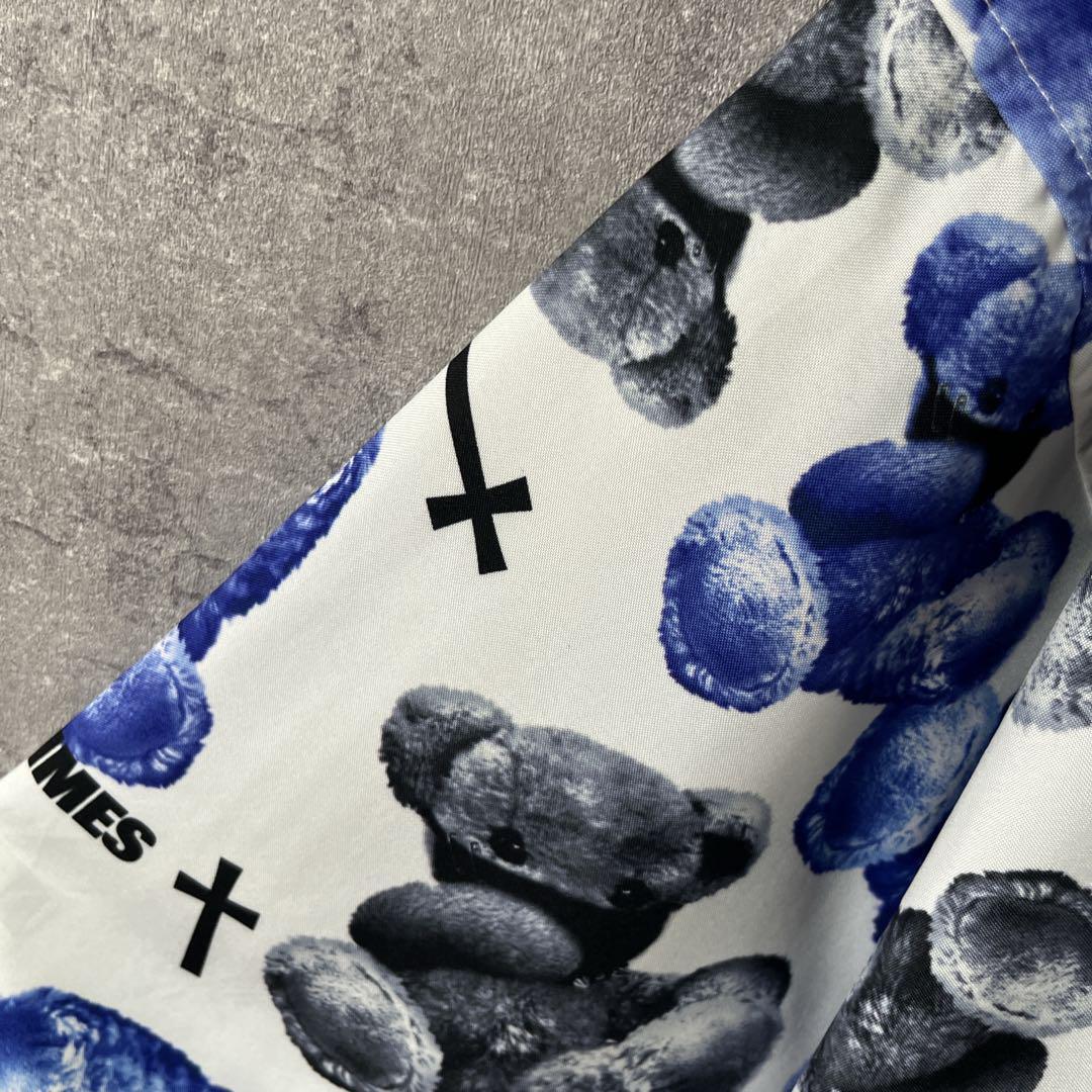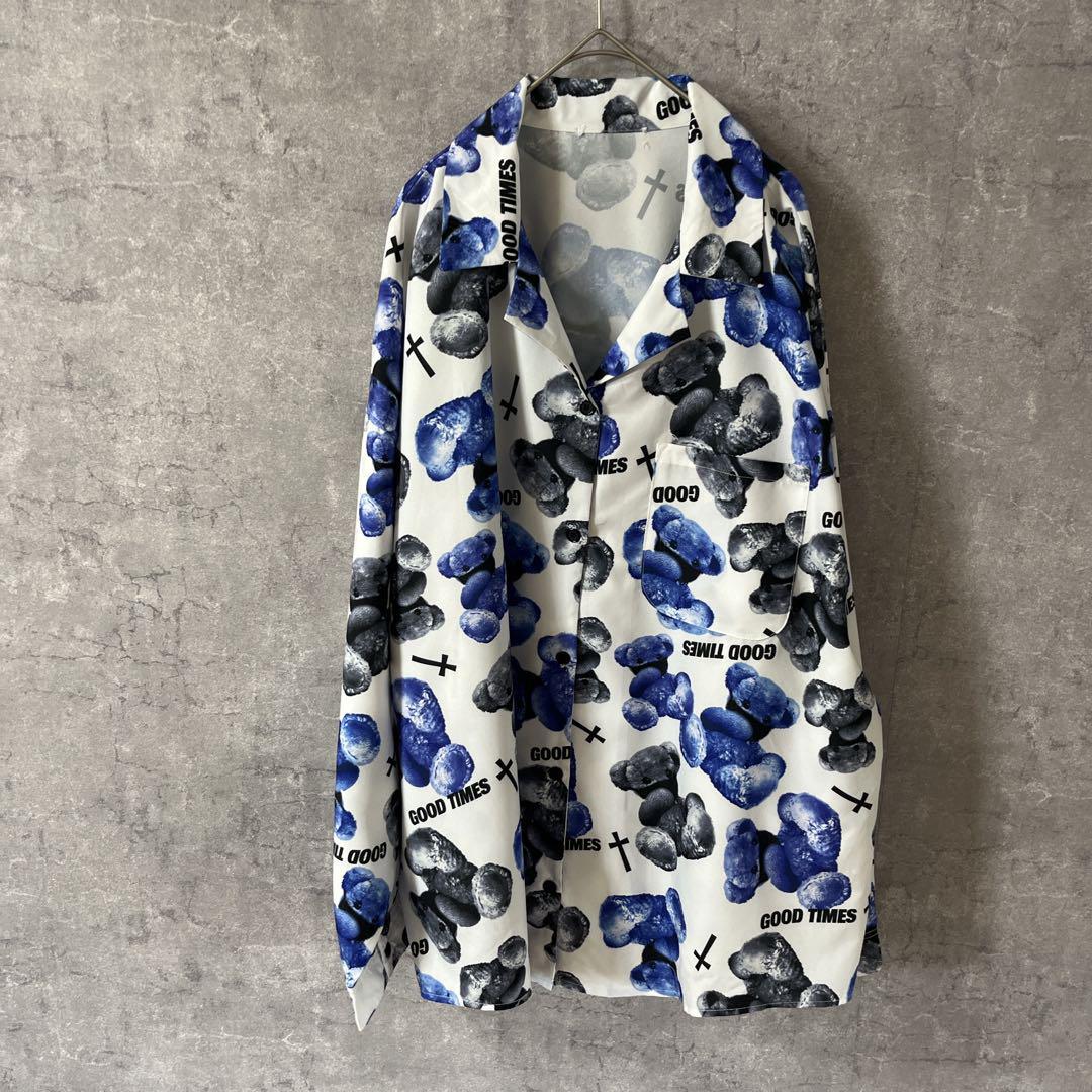 ぬいぐるみクマ柄シャツ 開襟 長袖 レディース3XLサイズ メンズ2XLサイズ程