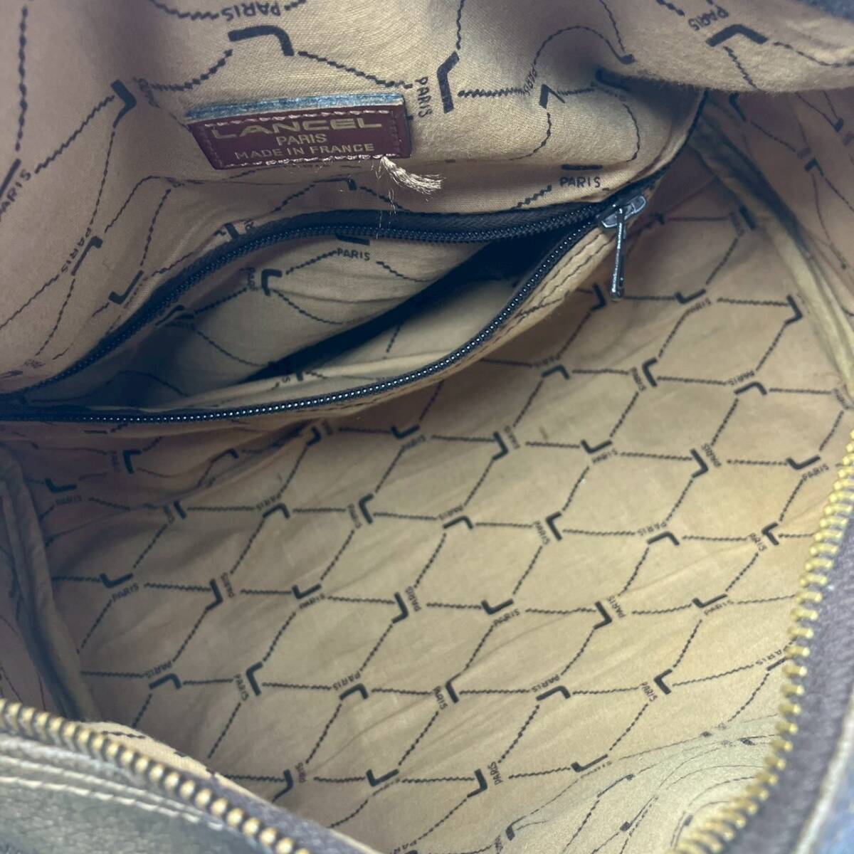 BG62○ LANCEL ランセル ボストンバッグ ミニボストン ハンドバッグ ブラウン カーキ レザーバッグ ユニセックス ファスナー 内ポケット