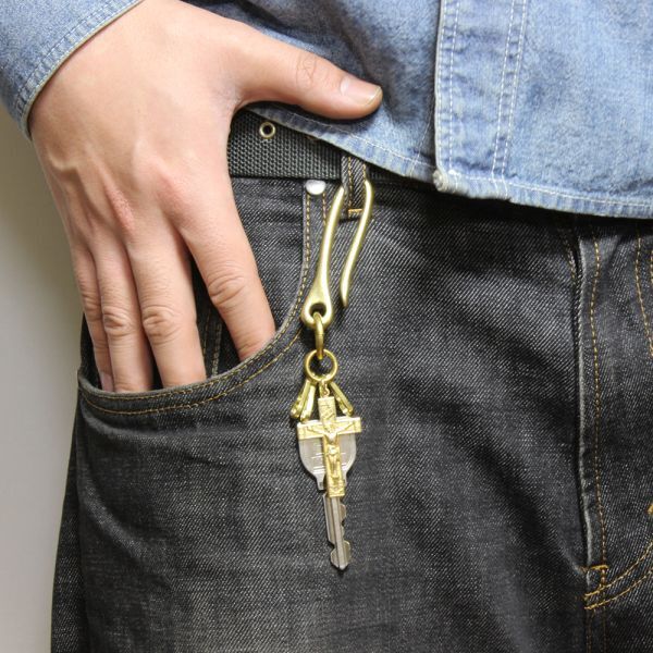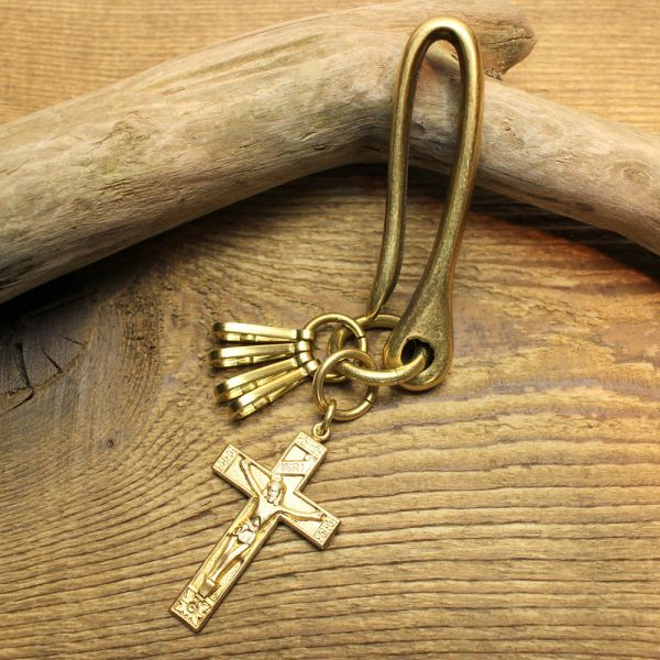 真鍮製(ブラス)マリアメダイ付キーリング KEYR-05 アメカジ バイカー アクセ
