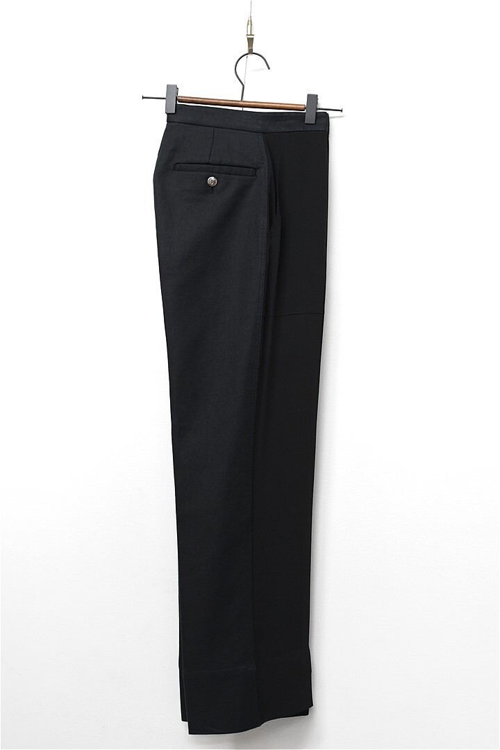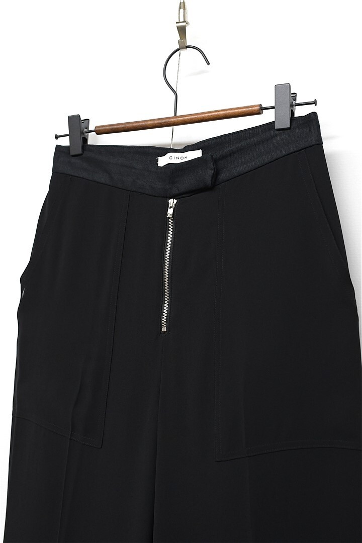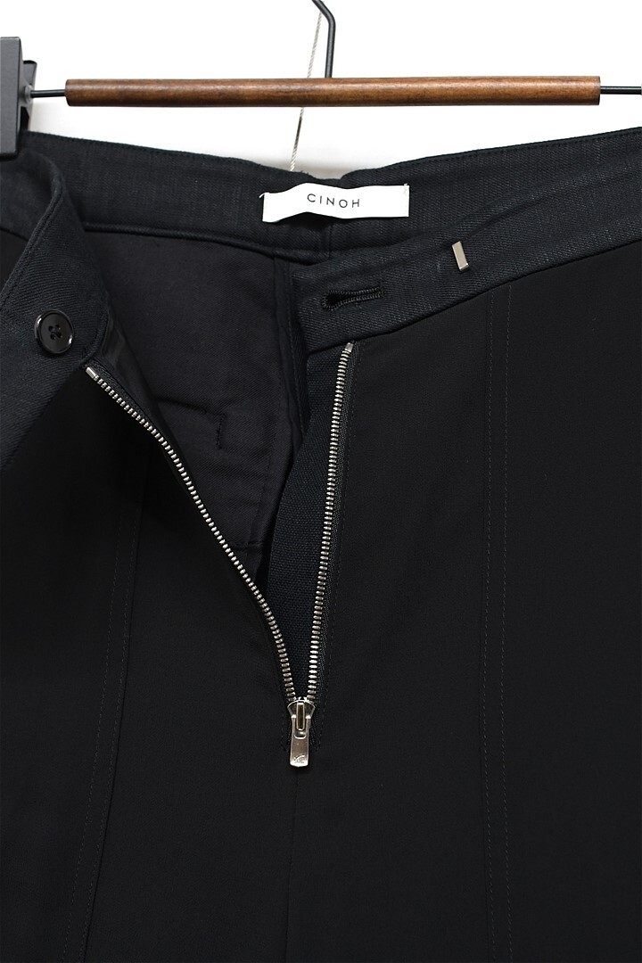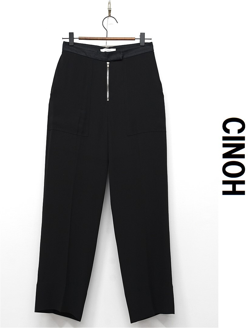 P396/美品 CINOH チノ スラックス パンツ トラウザー シースルー 生地切替 リネン混 36 S 黒 春夏秋