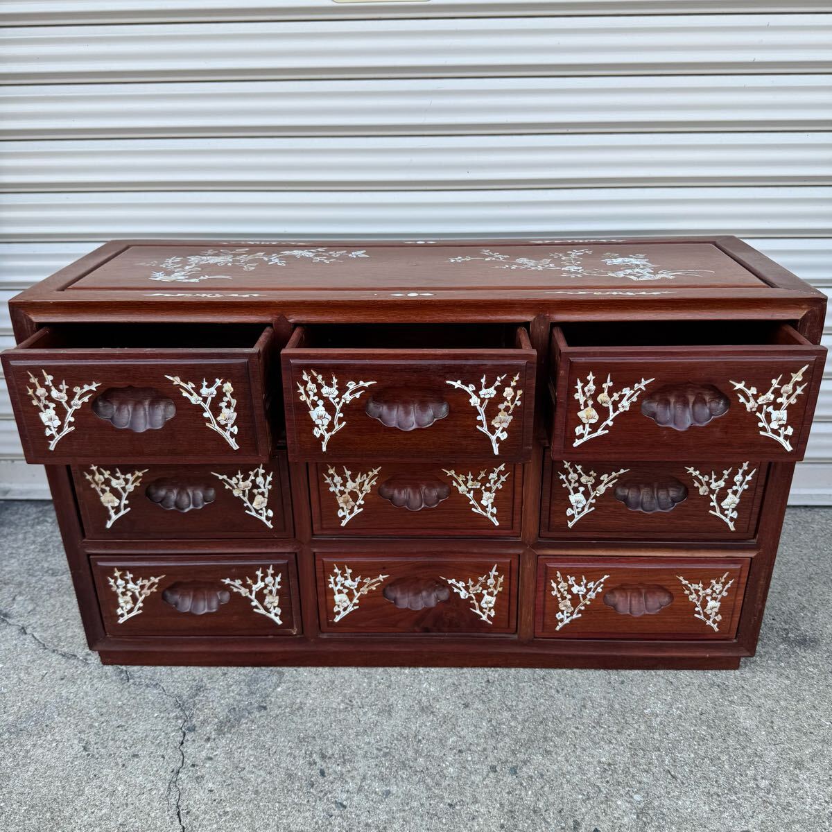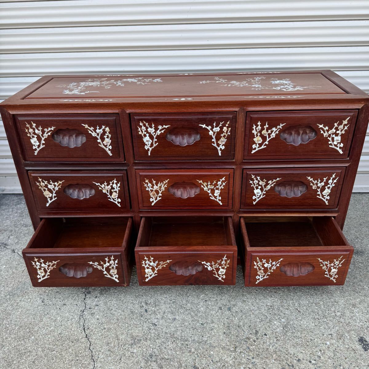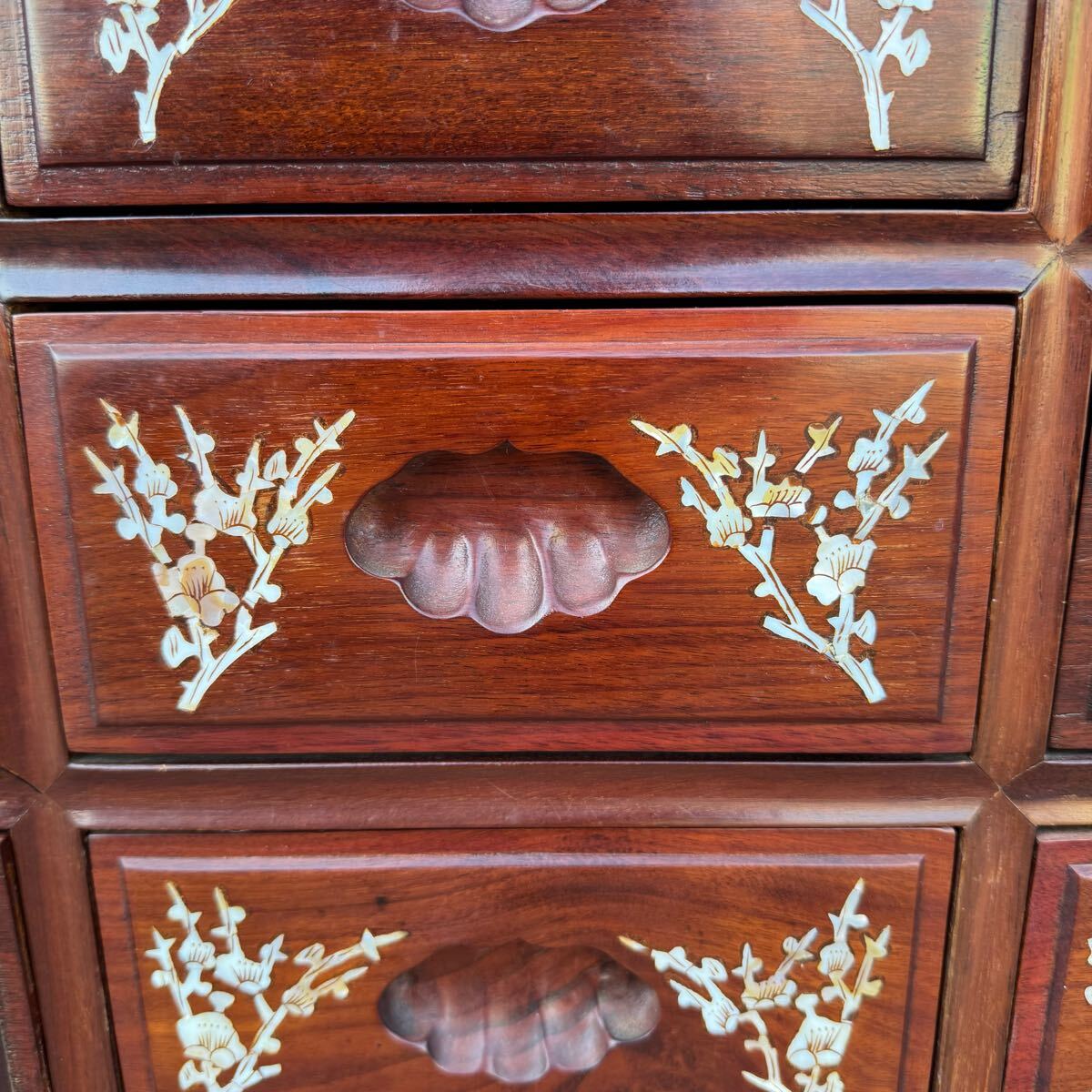 豪華 螺鈿細工 花梨 唐木 3段9杯 小箪笥チェスト 収納キャビネット引出 抽斗飾り棚になります。