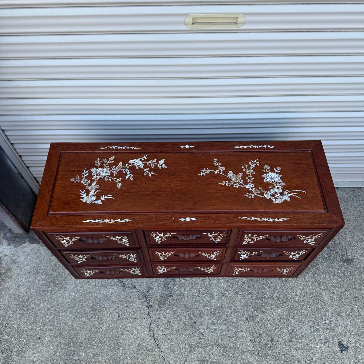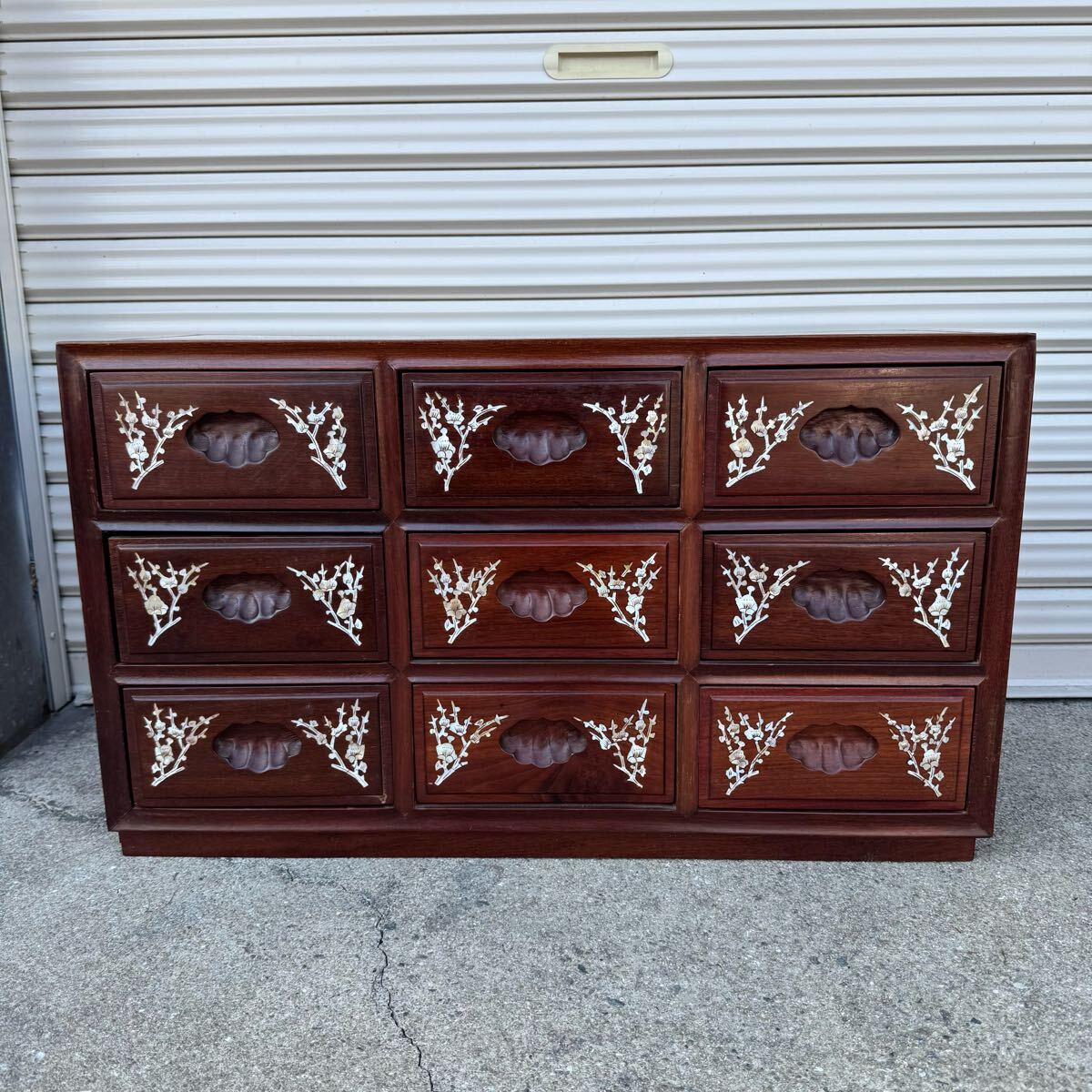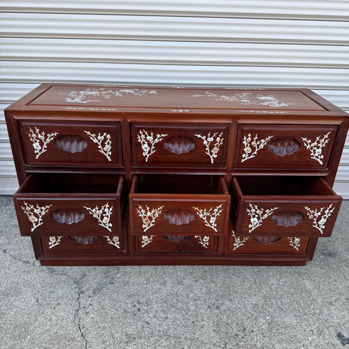 豪華 螺鈿細工 花梨 唐木 3段9杯 小箪笥チェスト 収納キャビネット引出 抽斗飾り棚になります。