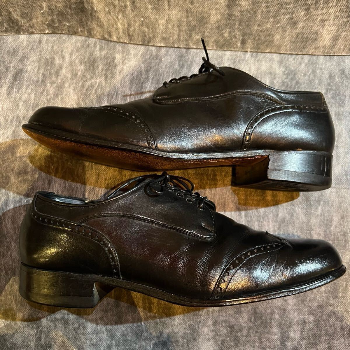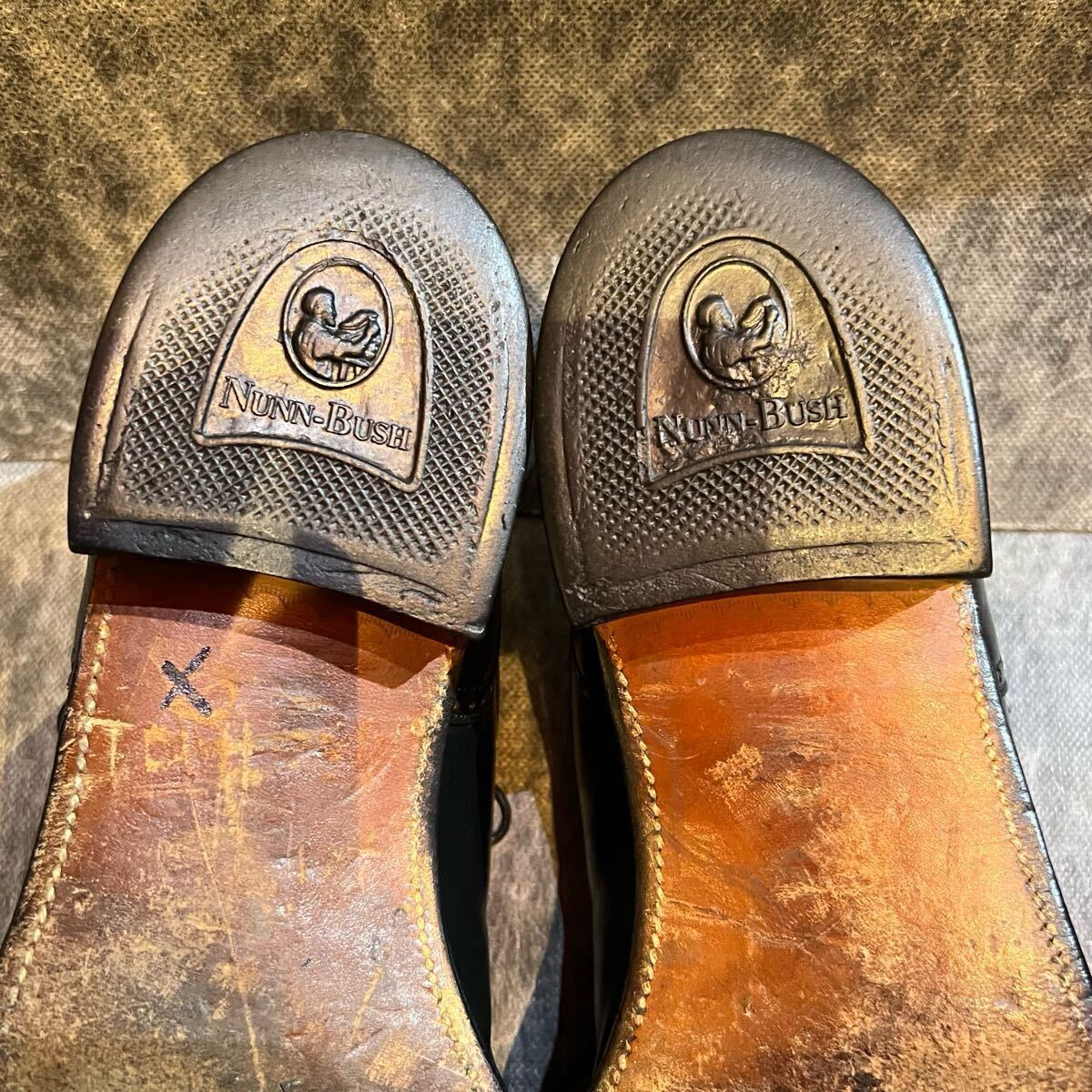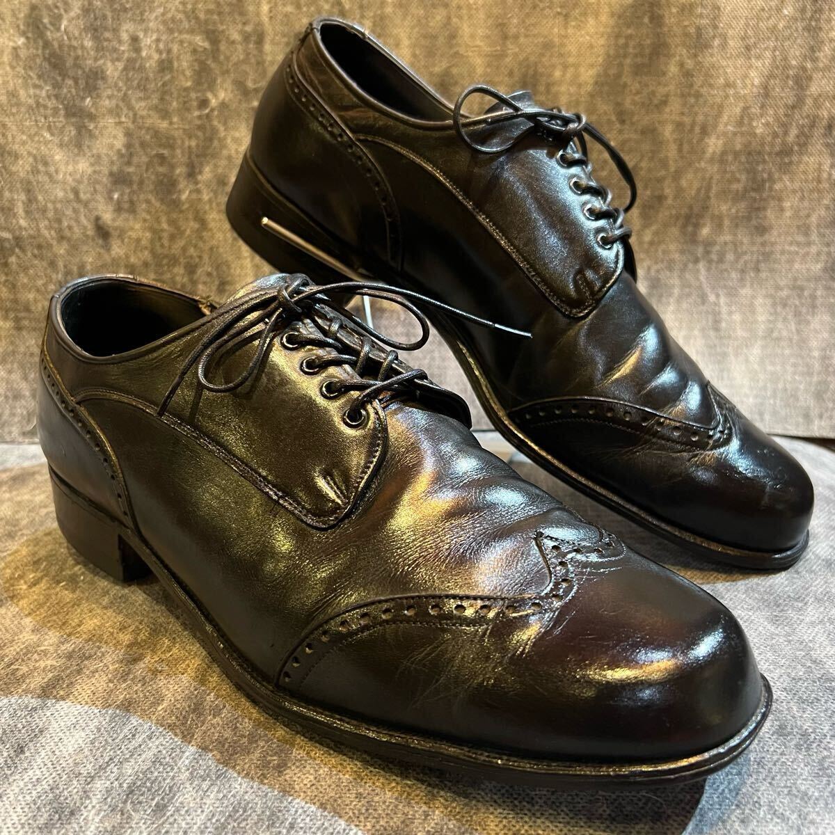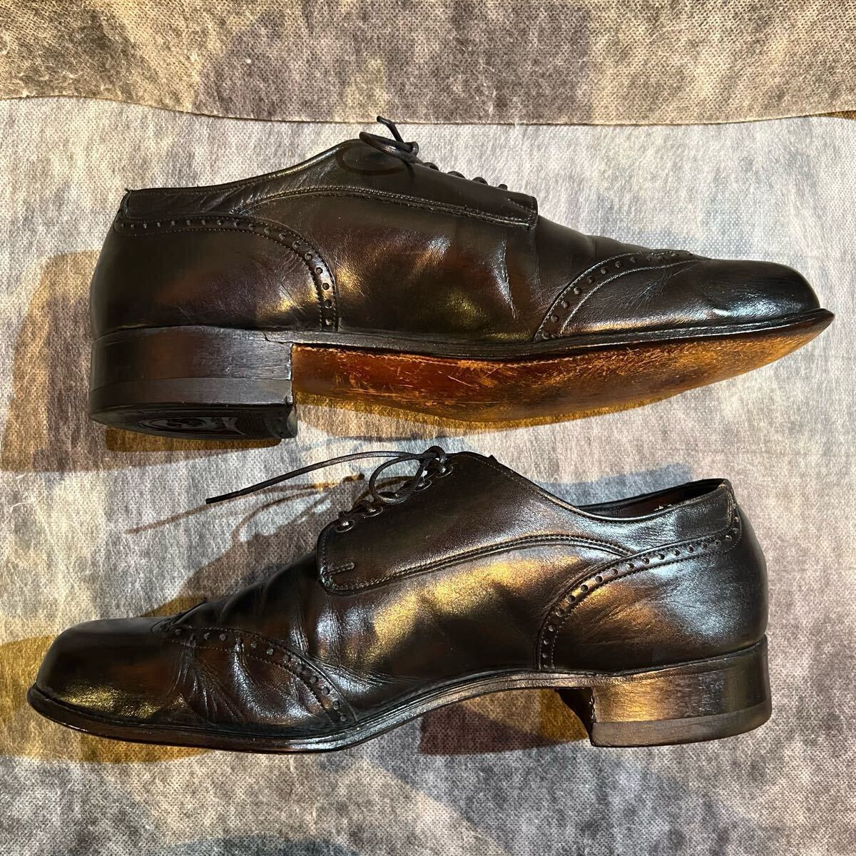 【about 1970-1980’s】 USA製NUNN BUSH”ショートウイング ウイングチップ 12D 30cm前後 ヴィンテージレザーシューズ 革靴 ブラック