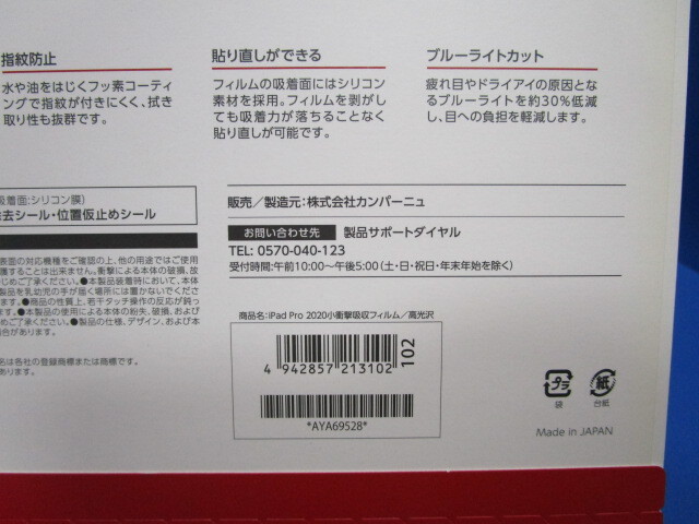 docomo select iPadPro11インチ(第2/3/4世代) iPadAir(第4/5世代) 衝撃吸収 ブルーライトカット 保護 フィルム 高光沢 ★u