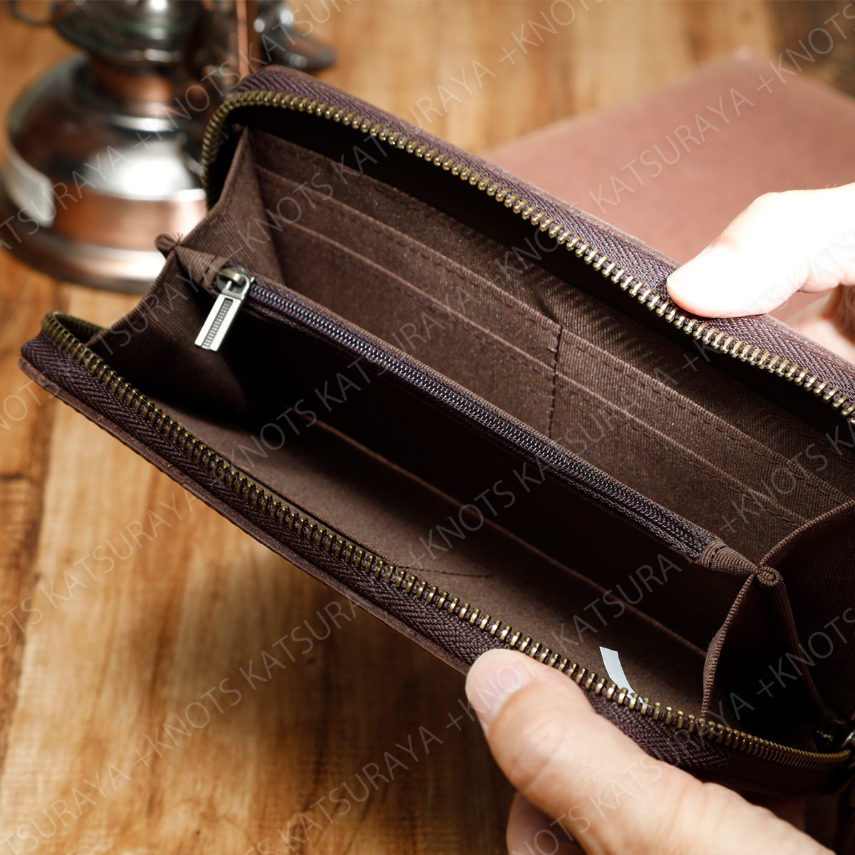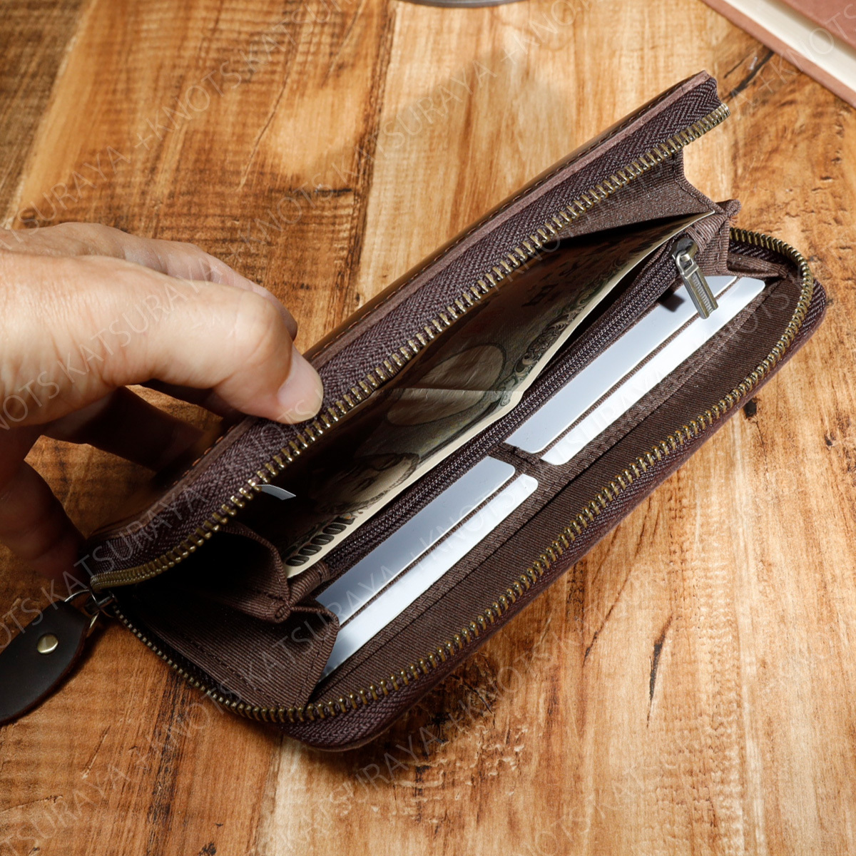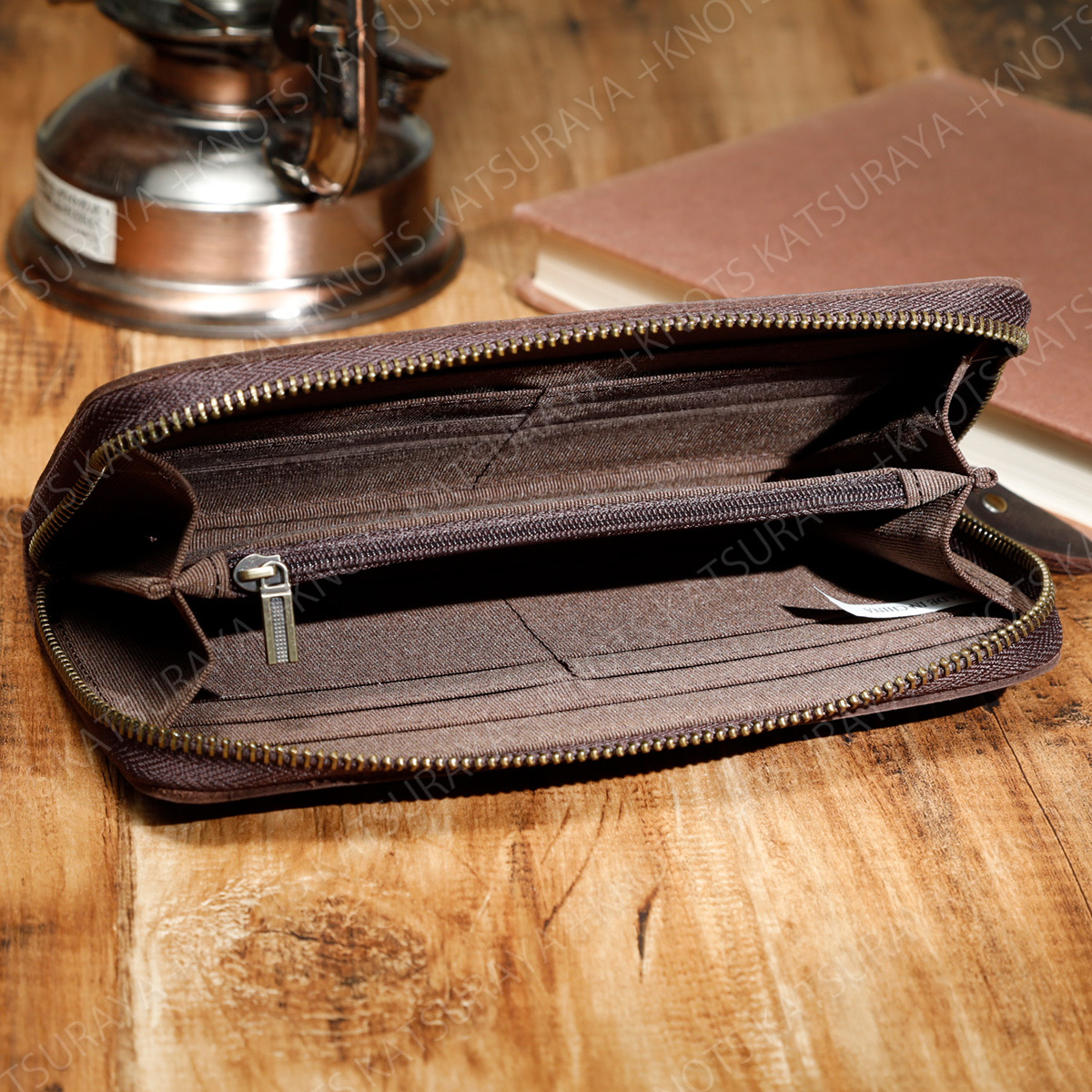 落ち着いた風合いの起毛革を使用したラウンドファスナータイプの長財布です。カード8枚と札入れ2か所、小勢に入れとワイドオープンポケットと必要十分な収縮性。オーソドックスでシンプルな構造が扱いやすく、幅いろい年代の方におすすめです。