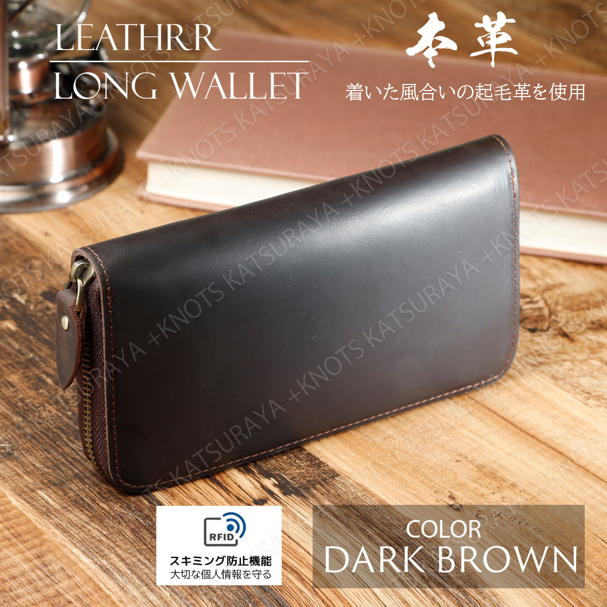 長財布 メンズ 本革★ダークブラウン★スキミング防止 磁気防止 シンプル ラウンドファスナー ラウンドジップ レディース 牛革 レザーa459