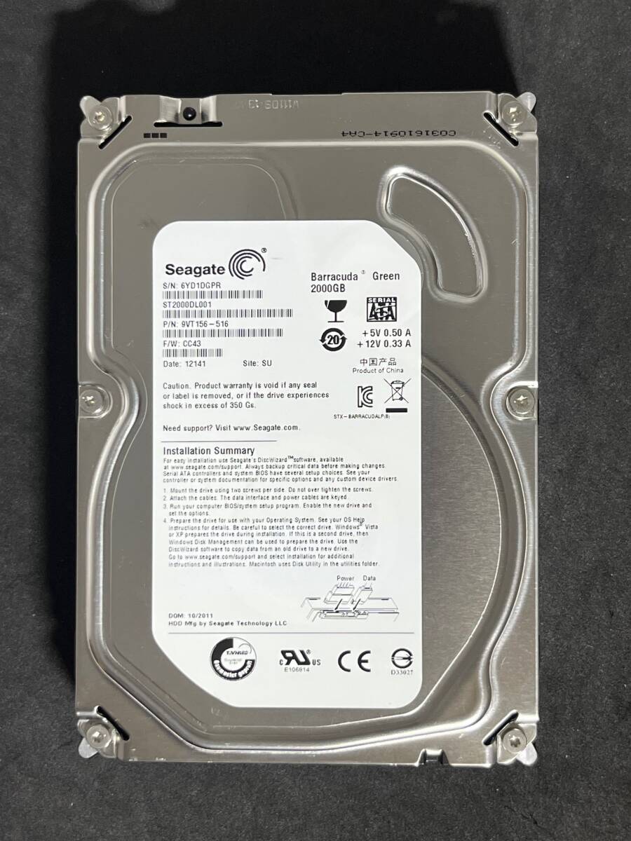 ★ 2TB ★ ST2000DL001 / Seagate F/W:CC43 【使用時間:16h】 新品同様 3.5インチ 内蔵 HDD SATA 2000GB [管理■57DG]