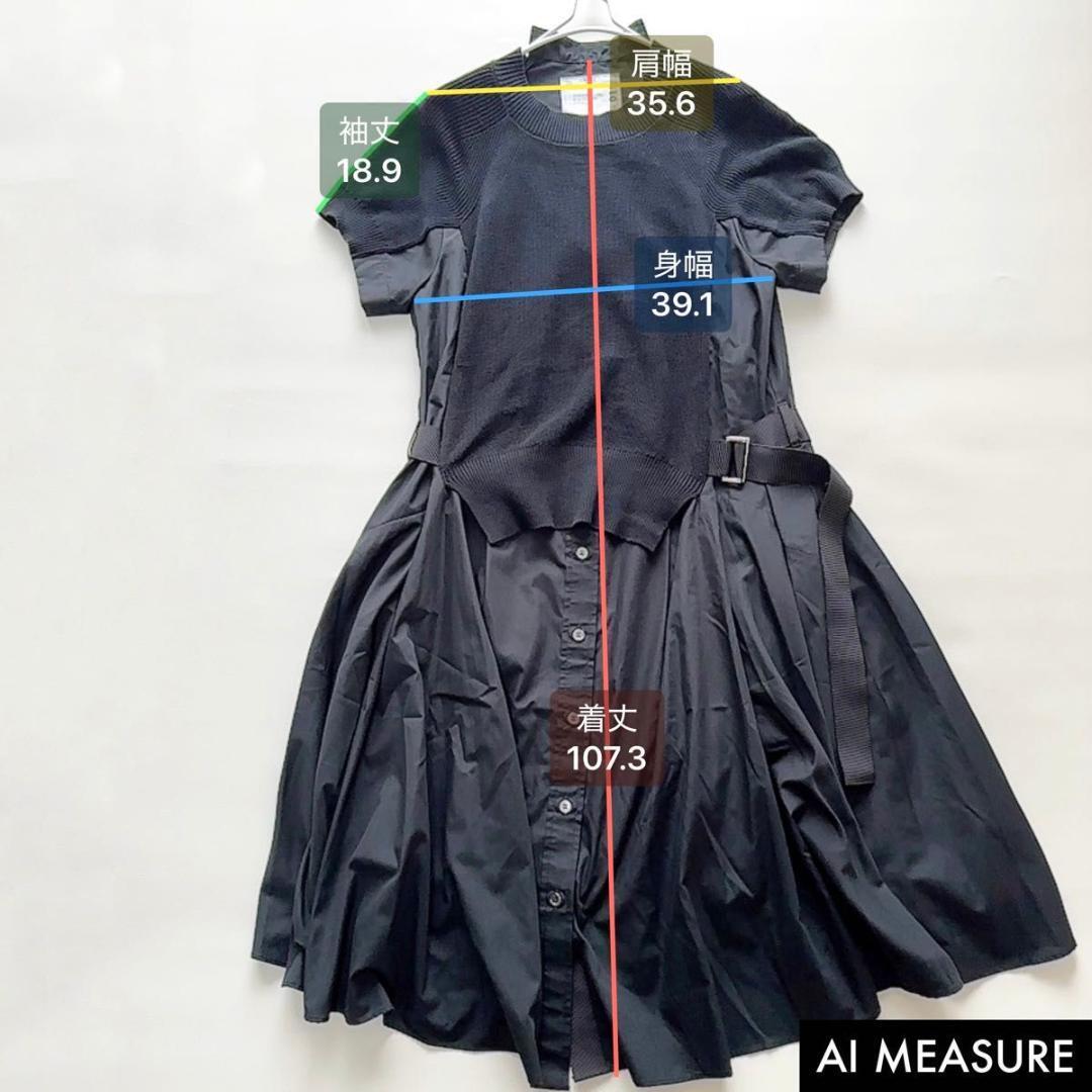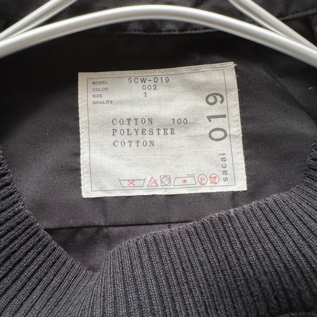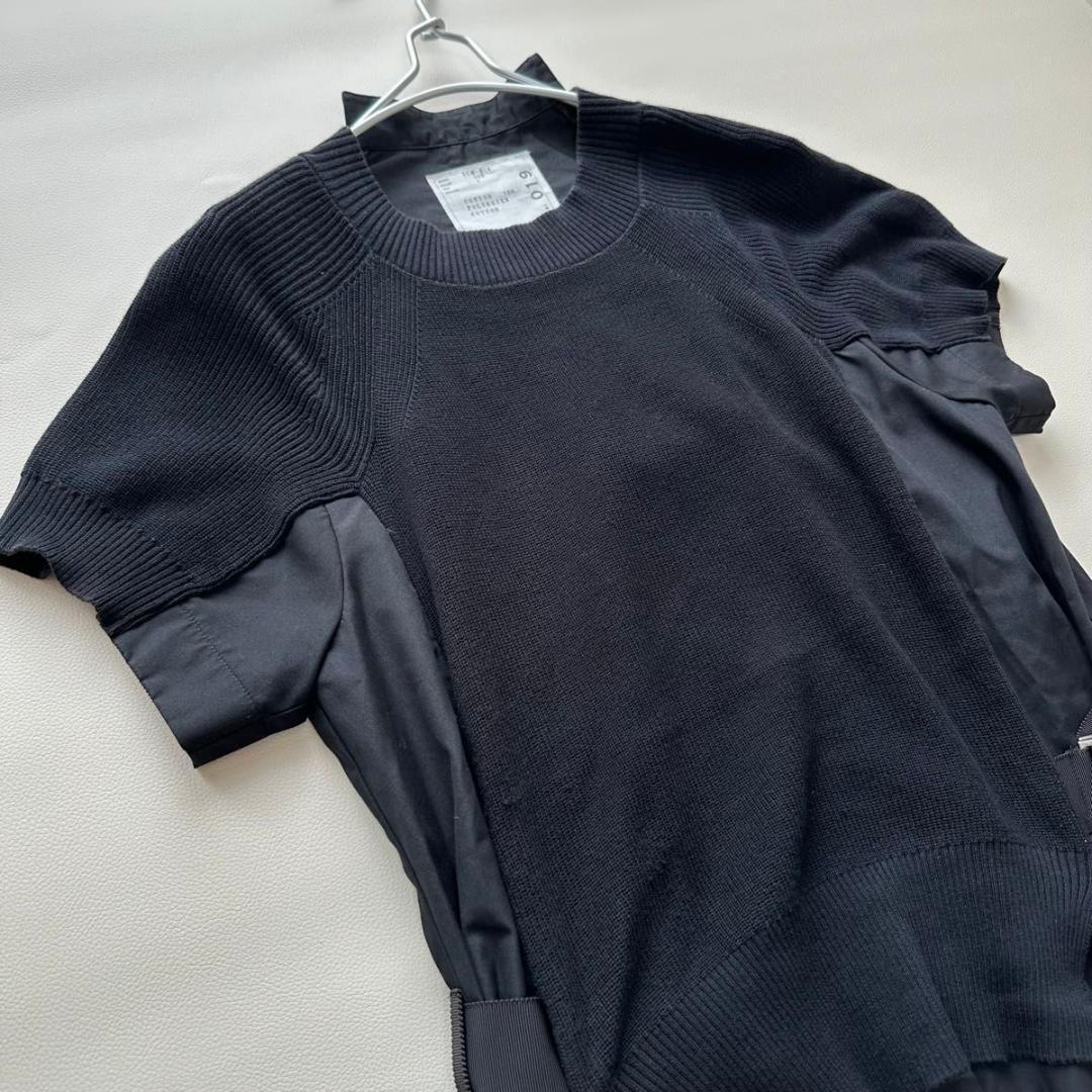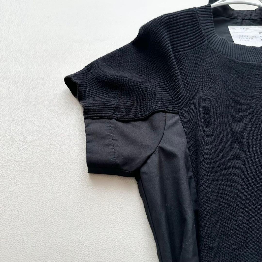 美品 サカイ コットンポプリン ドッキングワンピース ニットシャツ sacai 半袖ワンピース コットン ブラック 1