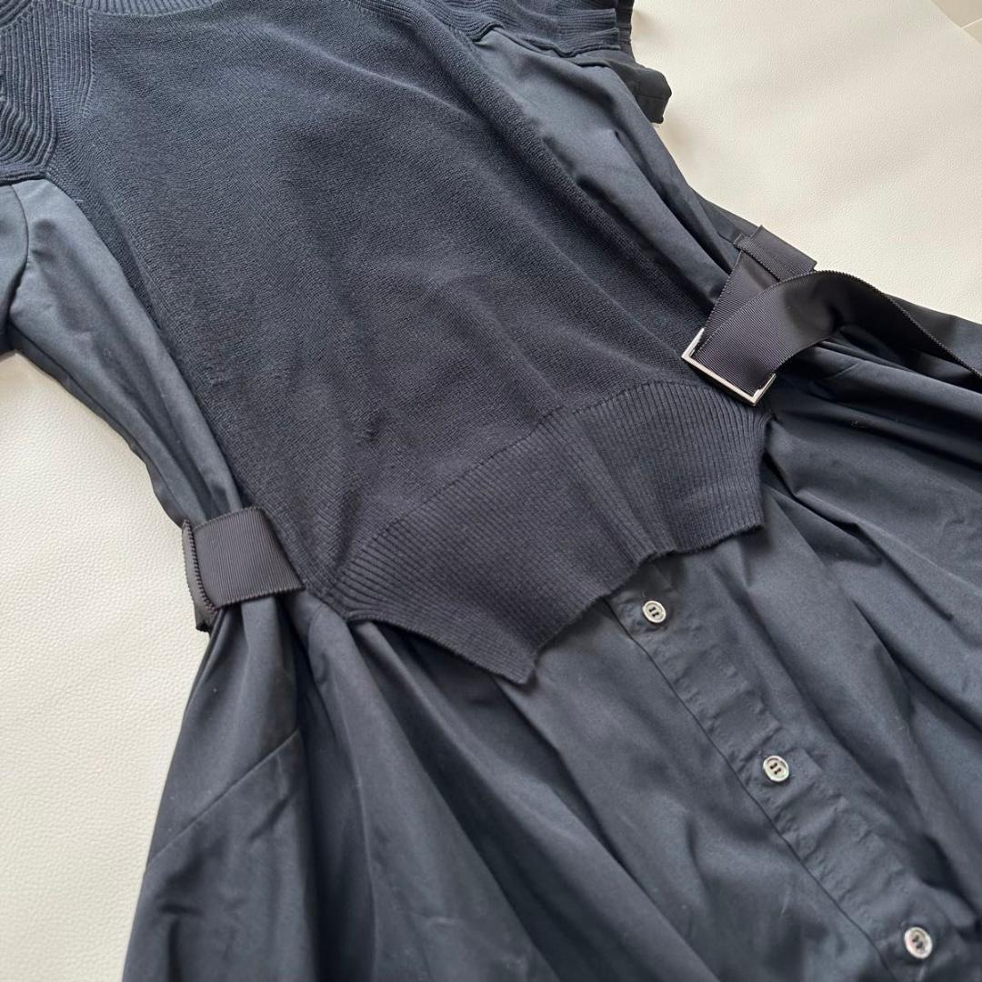 美品 サカイ コットンポプリン ドッキングワンピース ニットシャツ sacai 半袖ワンピース コットン ブラック 1